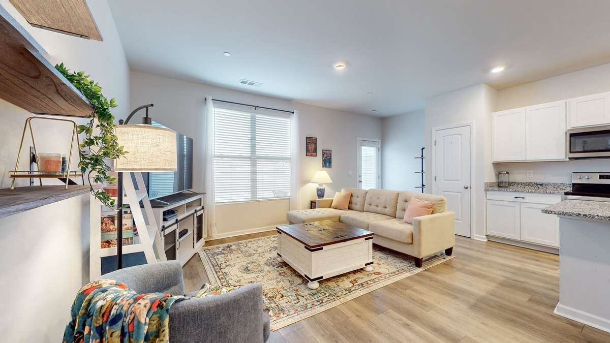 Welcome to 122 Champions Lane in the sought- after Sycamore Ridge community! This 3- bedroom, 2. 5- bath townhome delivers modern style, open living, and unbeatable convenience. Step inside to a bright foyer that flows into the spacious open- concept living and dining area. The kitchen steals the show with contemporary white cabinetry, granite countertops, a massive island with seating, and stainless appliances. Upstairs, all three bedrooms are tucked away for privacy. The primary suite feels like a retreat with its tray ceiling, double closets - including a walk- in and a spa- like bath with granite double vanity. Outside, enjoy your fenced backyard, perfect for pets or gatherings. Other perks include a one- car garage, laundry upstairs with washer/ dryer included, and low- maintenance living. Incredible location: just 25 minutes to Nashville, 20 minutes to Clarksville, plus walkability to schools and local shops. This home offers a great opportunity for buyers willing to navigate a short sale. Property is being sold as- is and subject to third- party approval. This home has been well kept and we would love for you to see it in person!