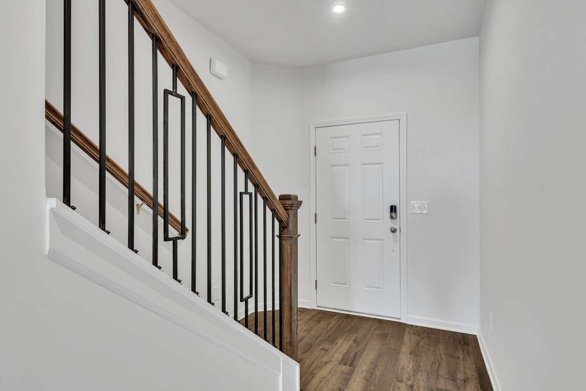 This 3- bedroom, 2. 5- bath home includes a one- car garage and showcases upscale finishes such as 42" cabinets, quartz kitchen countertops, wood stair spindles, and a 10x10 patio—with many more upgrades such as solid surface floors throughout the main level included in the price!