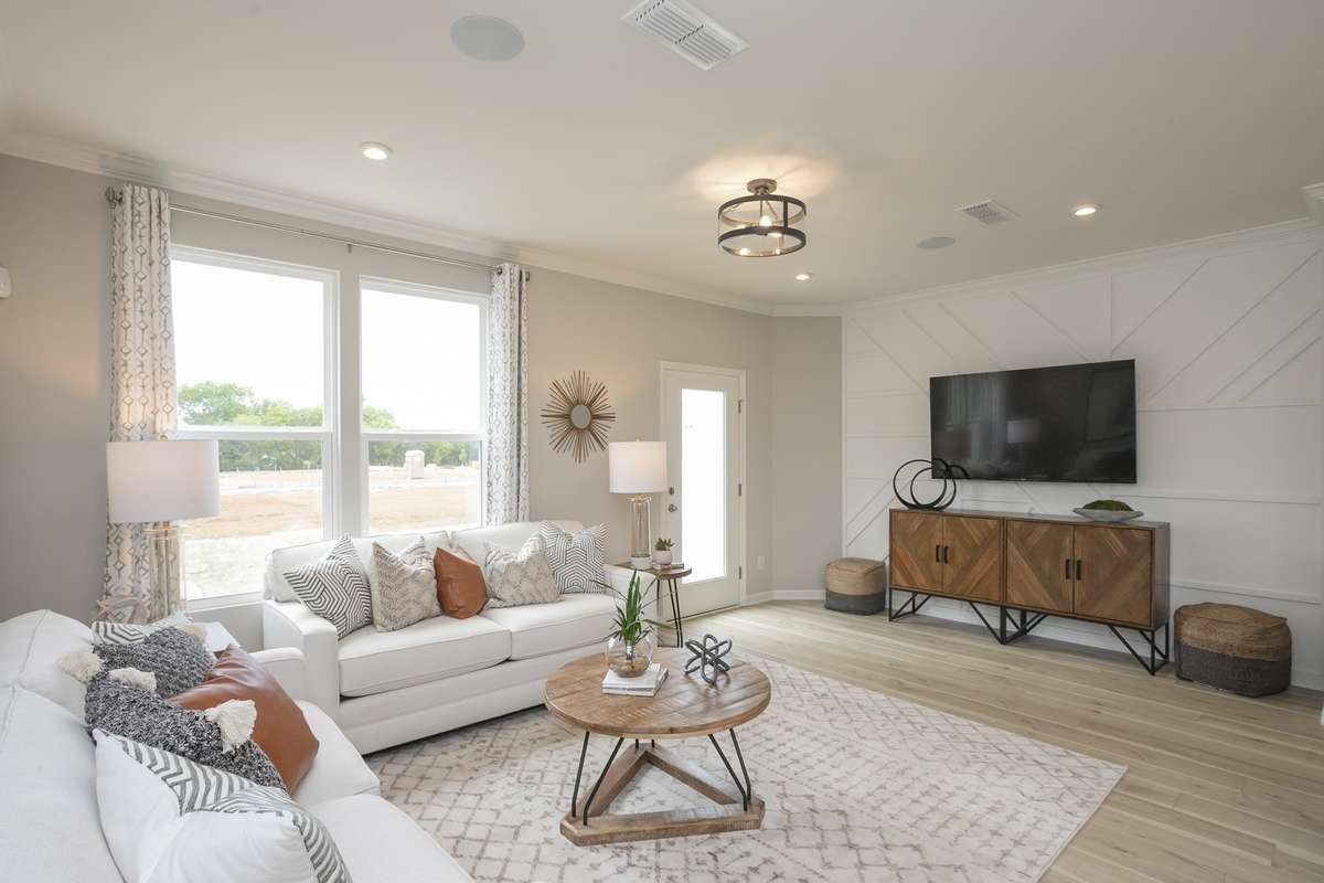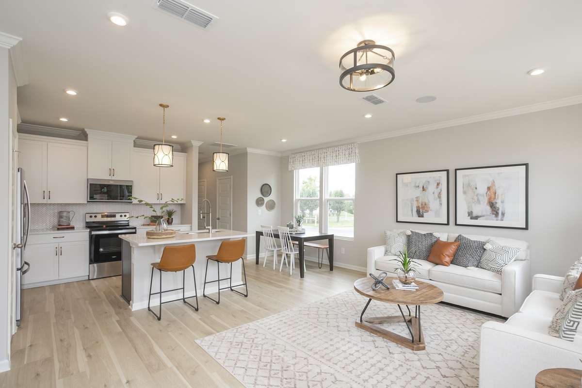 Solid surface floors throughout the main level make cleaning a breeze. Located in Tulip Hills, a Zero Energy Ready community soon to be gated with resort- style amenities—pool, cabana, dog park—just 3 minutes to I- 40, a short10 minutes to the airport, and 20 minutes to Downtown Nashville. Surrounded by shopping, dining, and everyday conveniences. HOA covers landscaping, plus closing cost incentives and a Move- In Ready Package are available. Backed by a multi- level builder warranty. This home is complete and ready for quick closing! Don' t wait this is the perfect opportunity to have an end unit! ( Homesite 174)