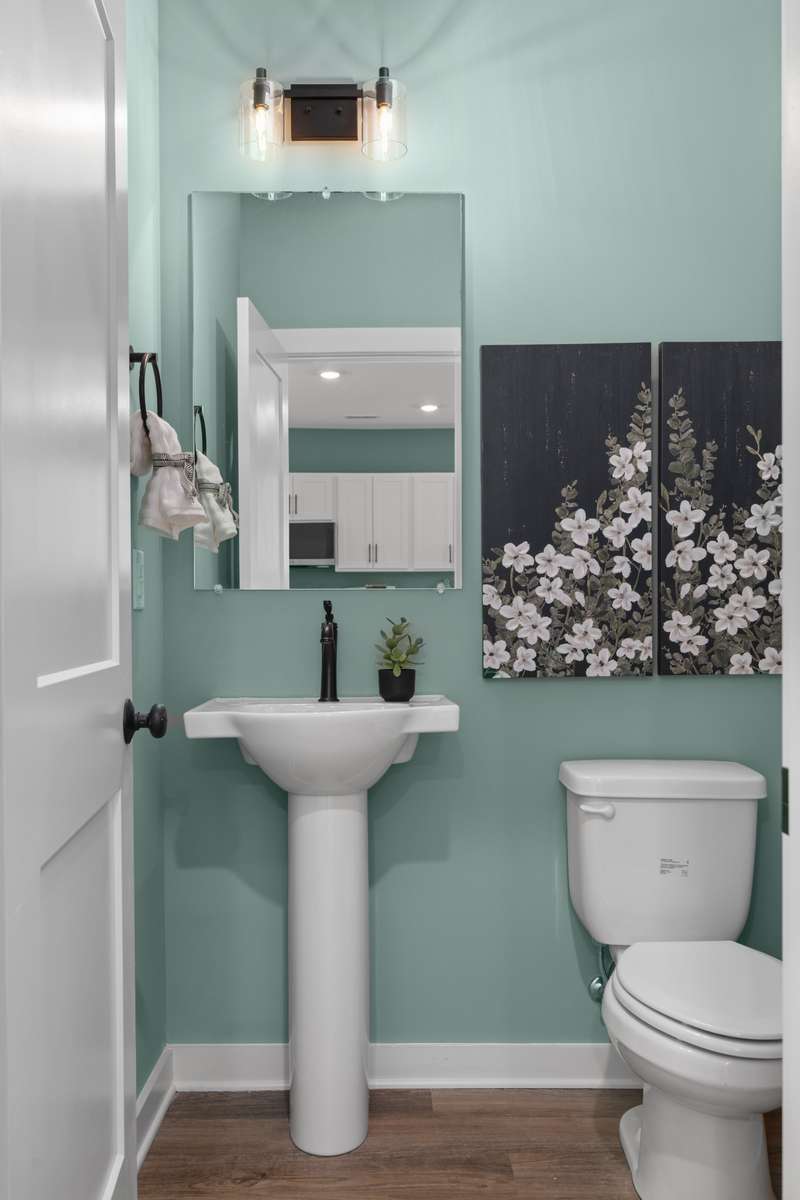 Photo of similar, staged model home. 1/2 bathroom downstairs in convenient for guests!