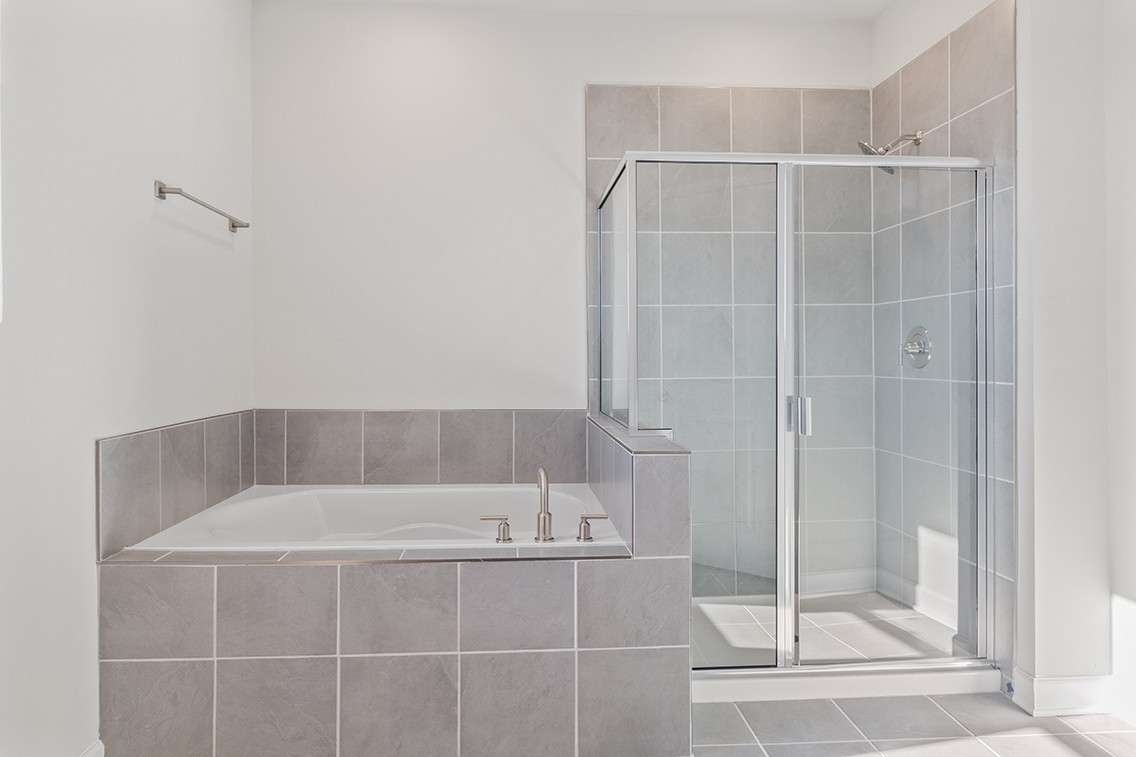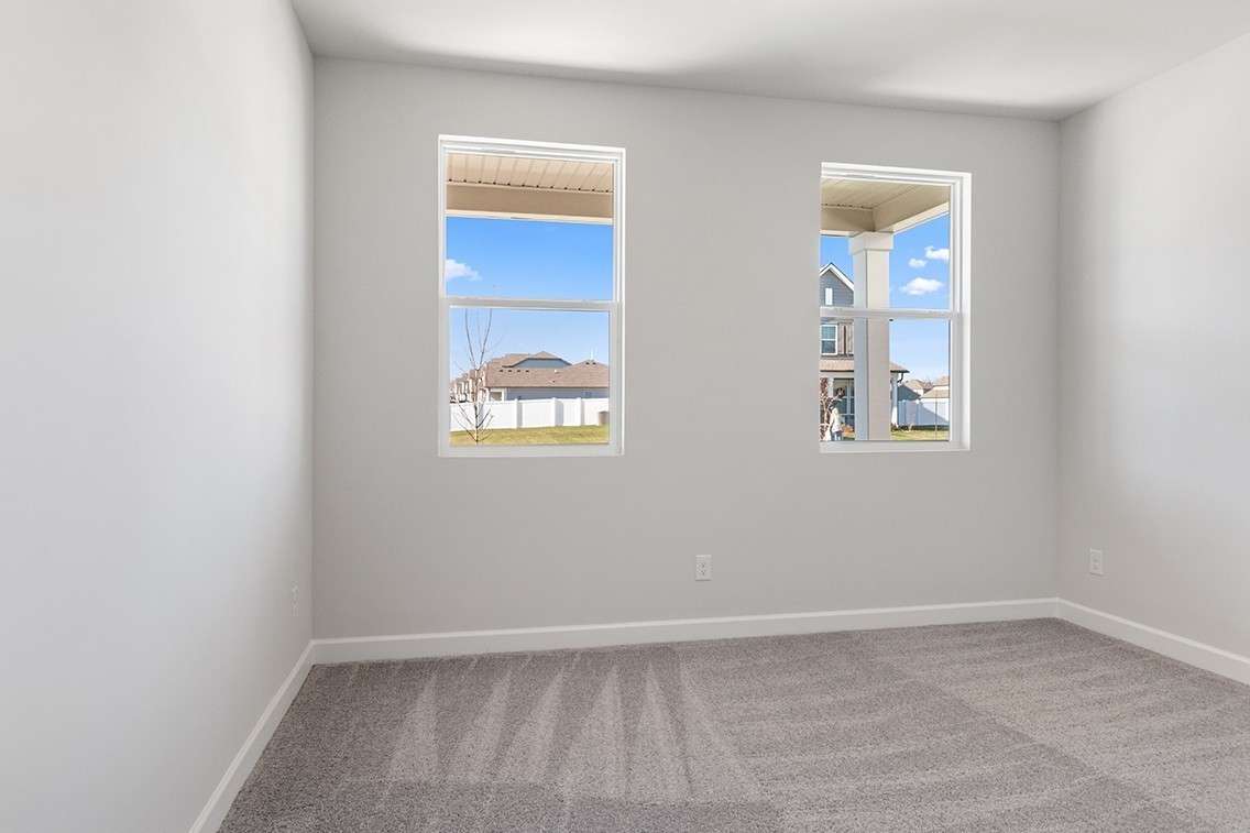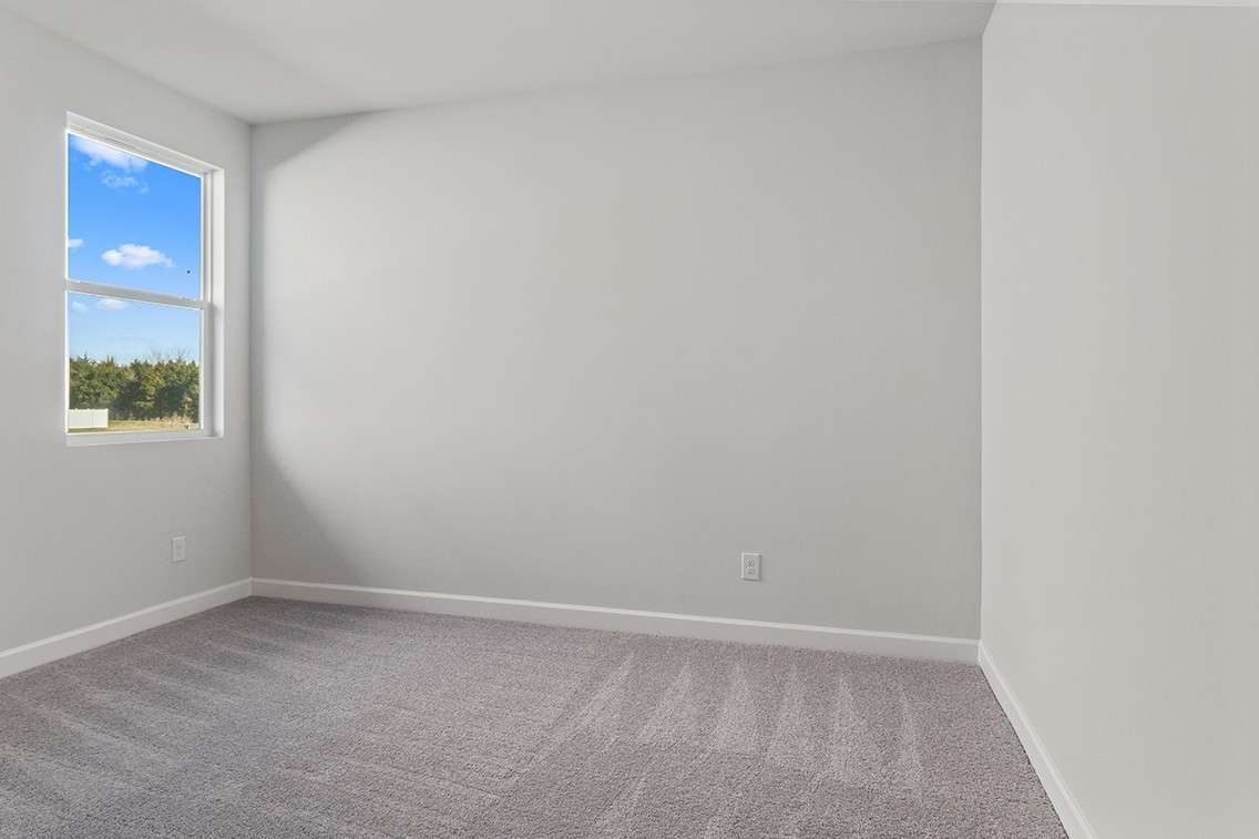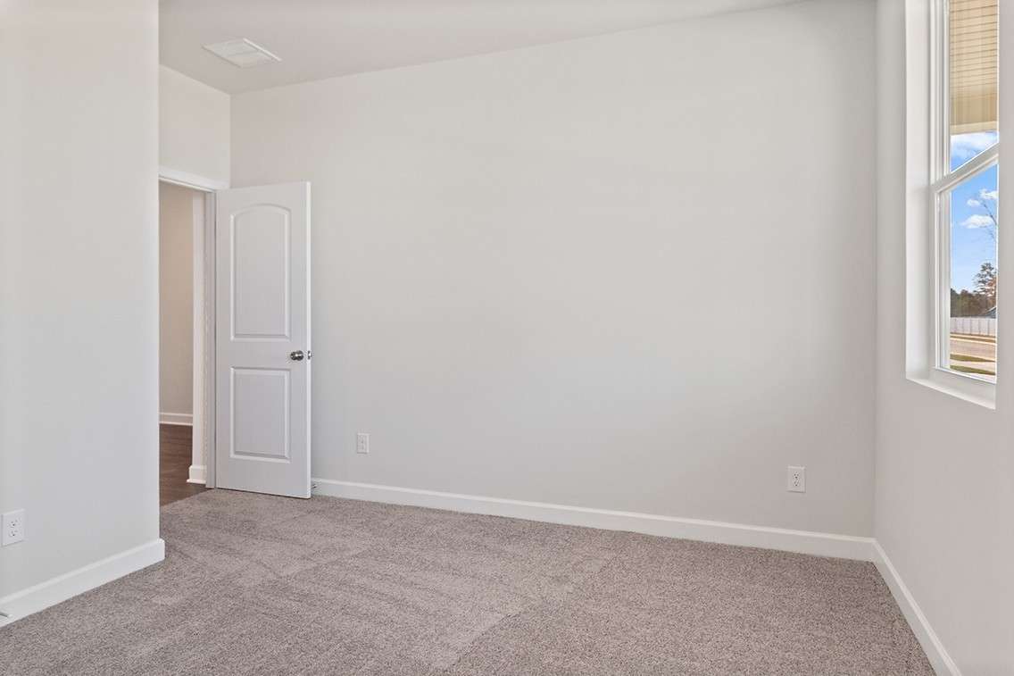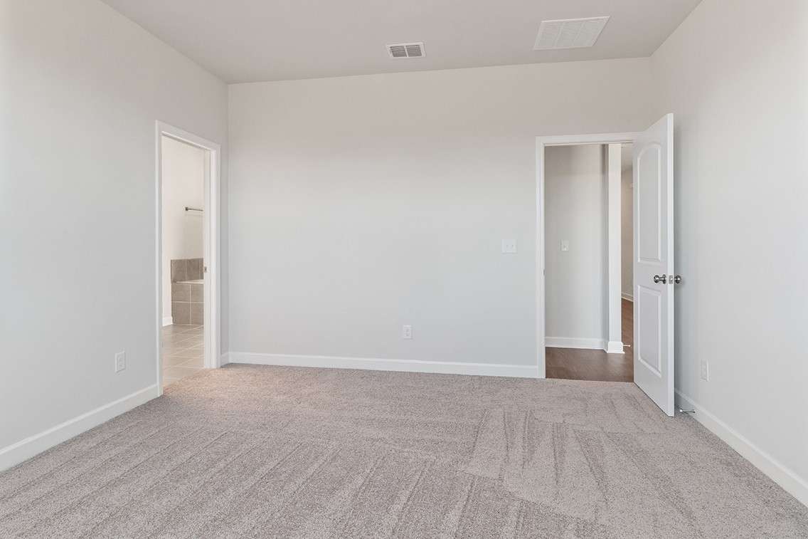 Three secondary bedrooms—including one with its own bath and walk- in closet—offer flexible space for guests, kids, or a hobby room. Tucked at the back of the home, the private owner’s suite includes a large walk- in closet and a relaxing en- suite bath with a walk- in shower and separate soaking tub. A built- in valet/ drop zone adds convenience just off the garage entry.
