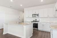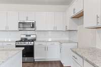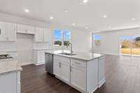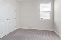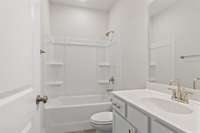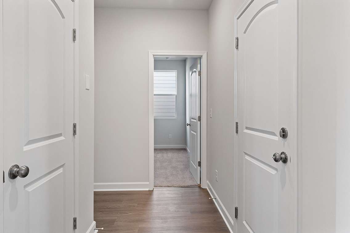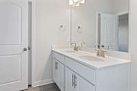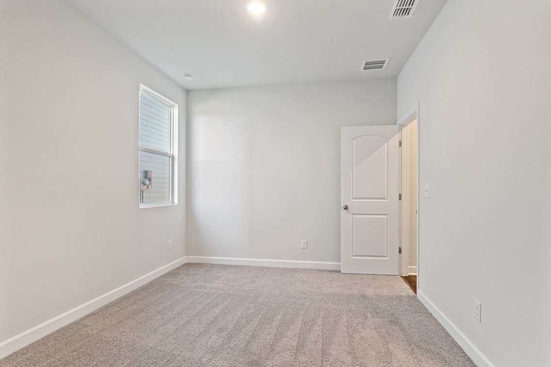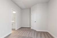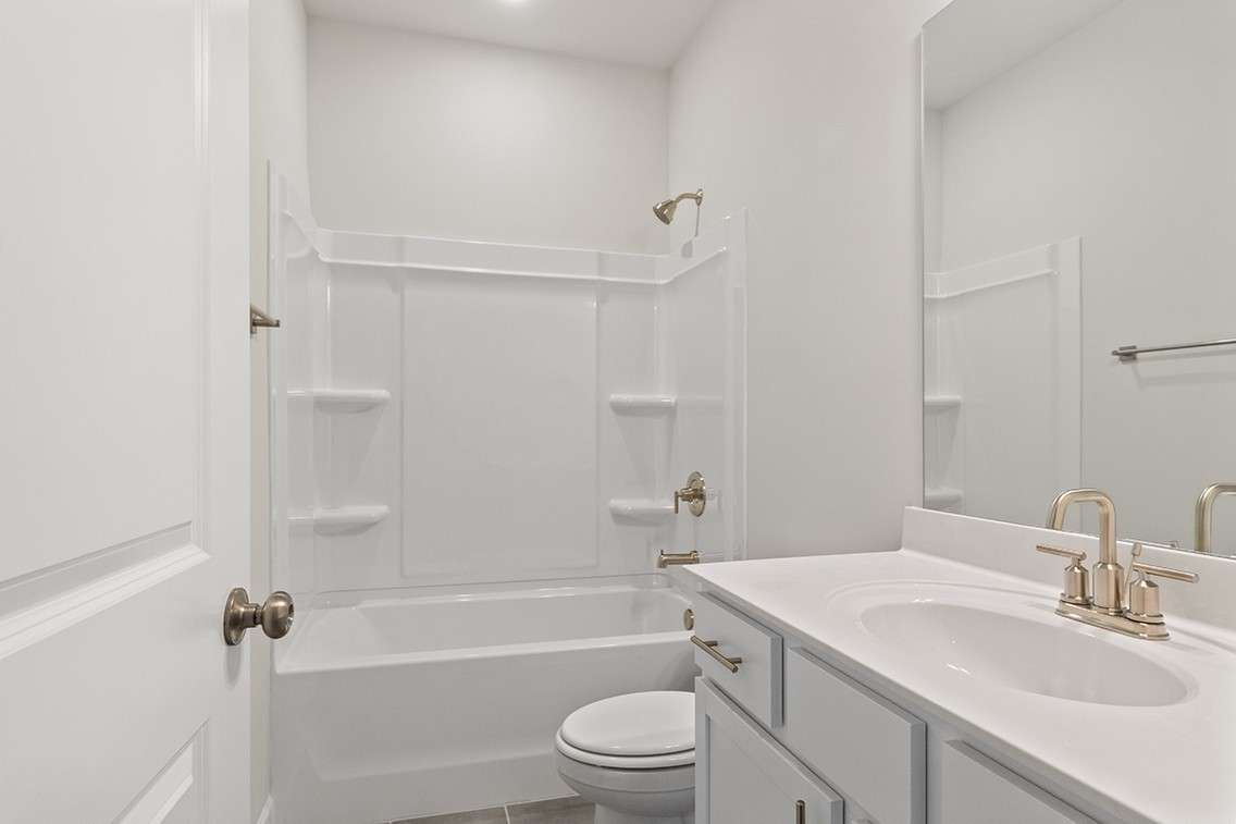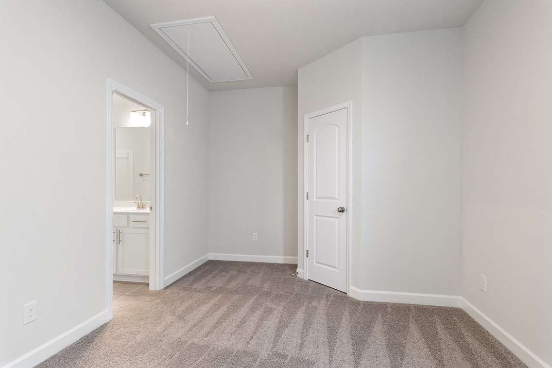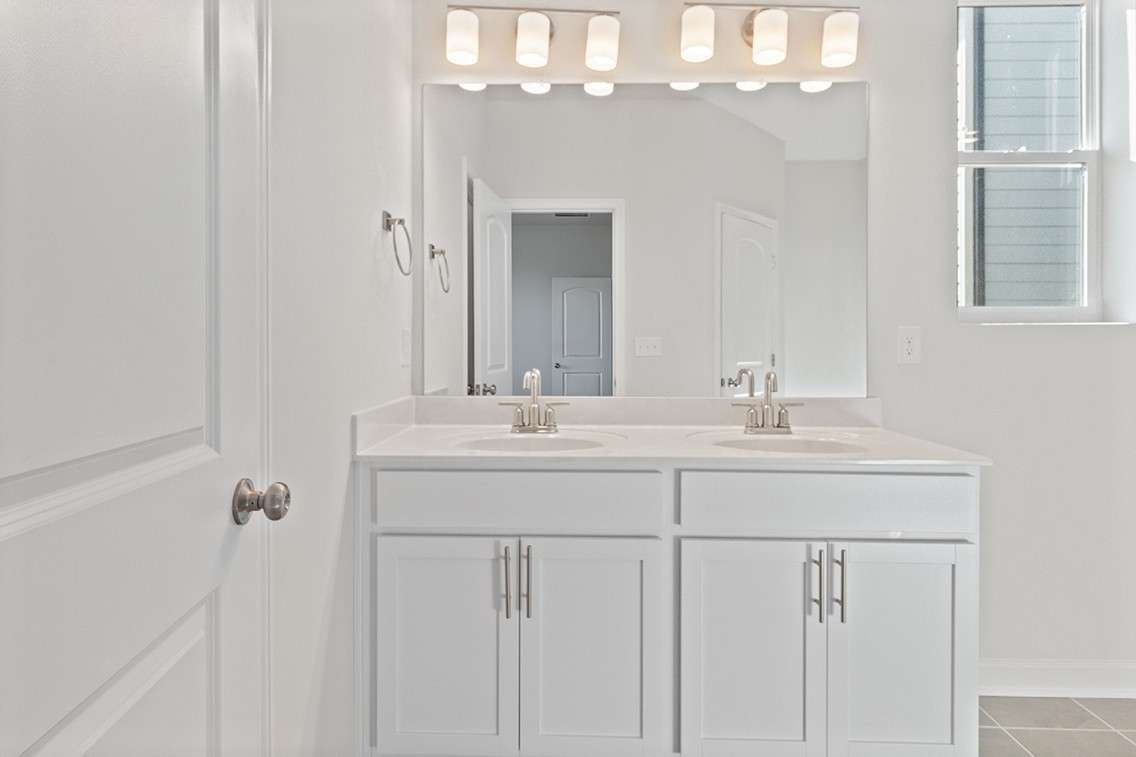 Three secondary bedrooms—including one with its own bath and walk- in closet—offer flexible space for guests, kids, or a hobby room. Tucked at the back of the home, the private owner’s suite includes a large walk- in closet and a relaxing en- suite bath with a walk- in shower and separate soaking tub. A built- in valet/ drop zone adds convenience just off the garage entry.