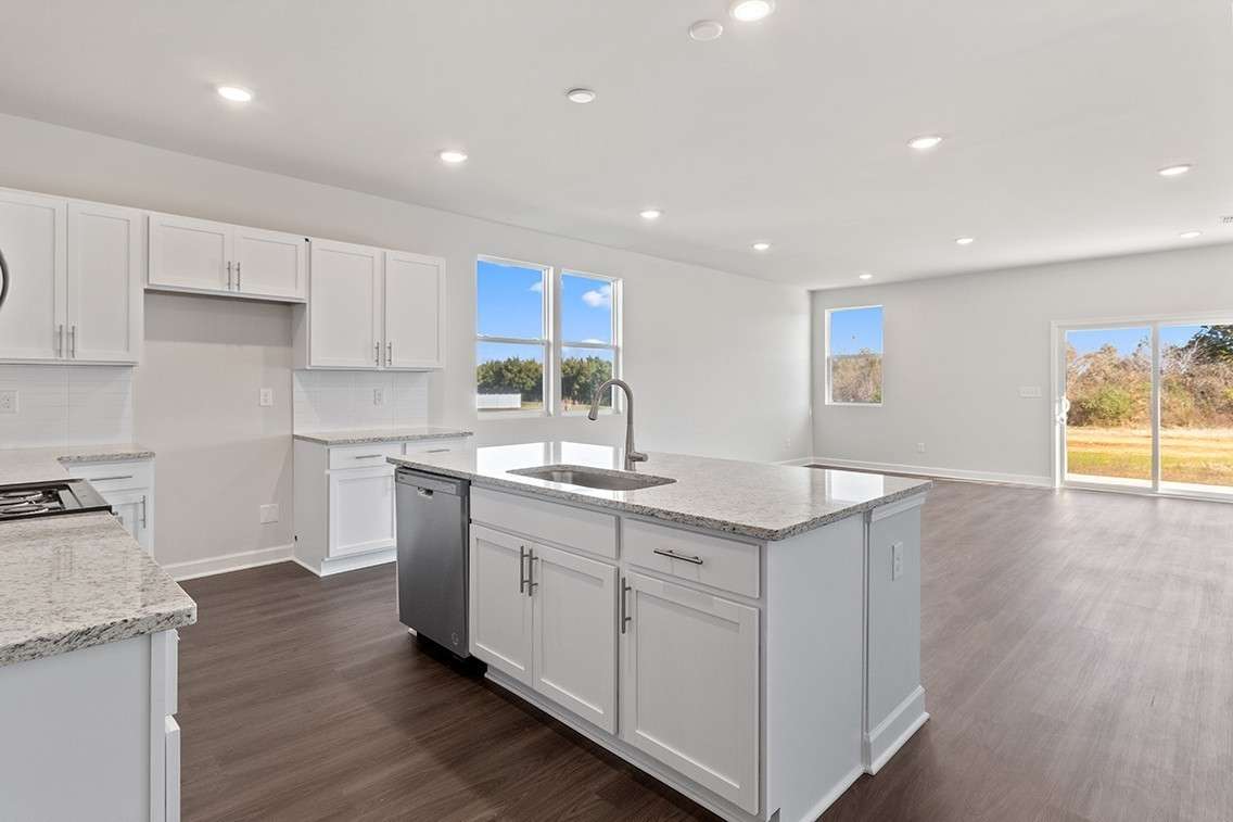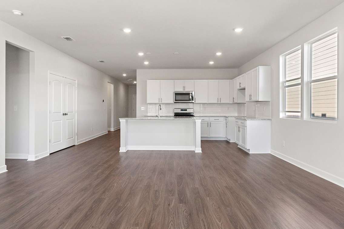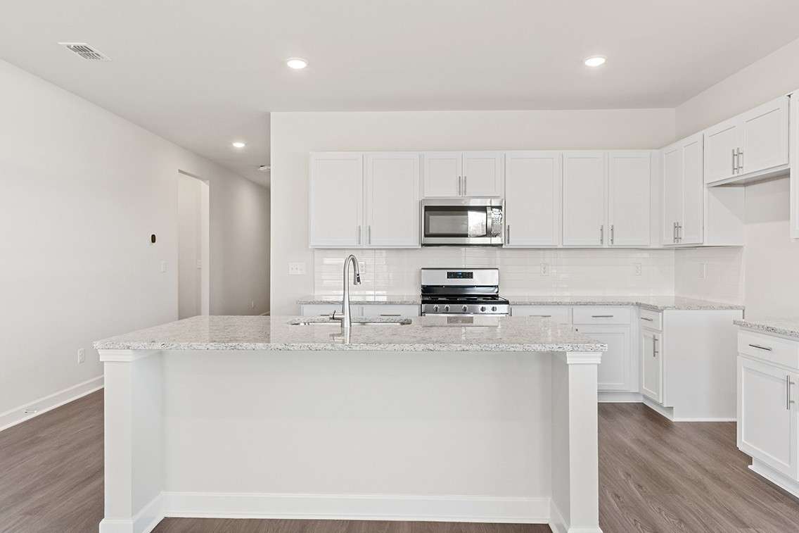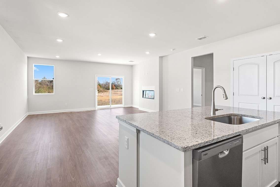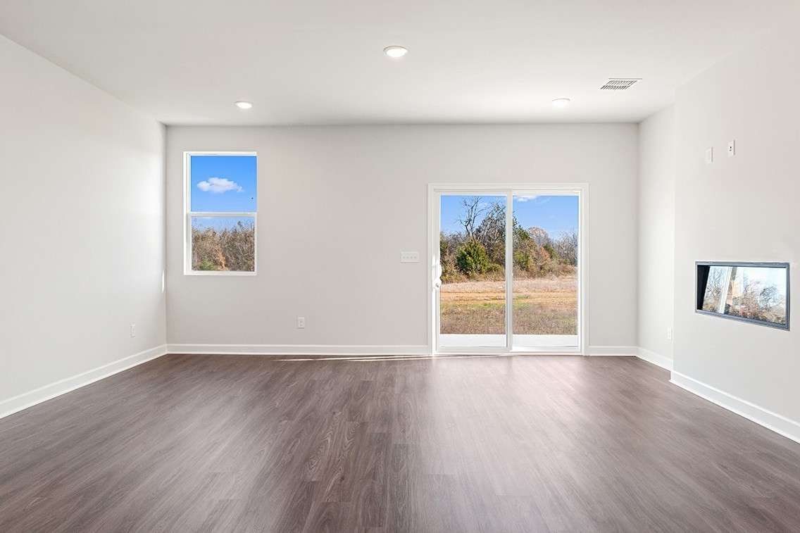 This single- story home at Barton Hills in Spring Hill, TN is full of thoughtful details and easy flow. The spacious corner lot sits just across from the community amenities, with treeline views across the street for added privacy and charm. Inside, an open- concept layout centers around an extended kitchen with abundant counterspace—perfect for everything from weeknight dinners to weekend hosting. The kitchen flows easily into the dining area and great room, which opens to a covered patio for seamless indoor- outdoor living.