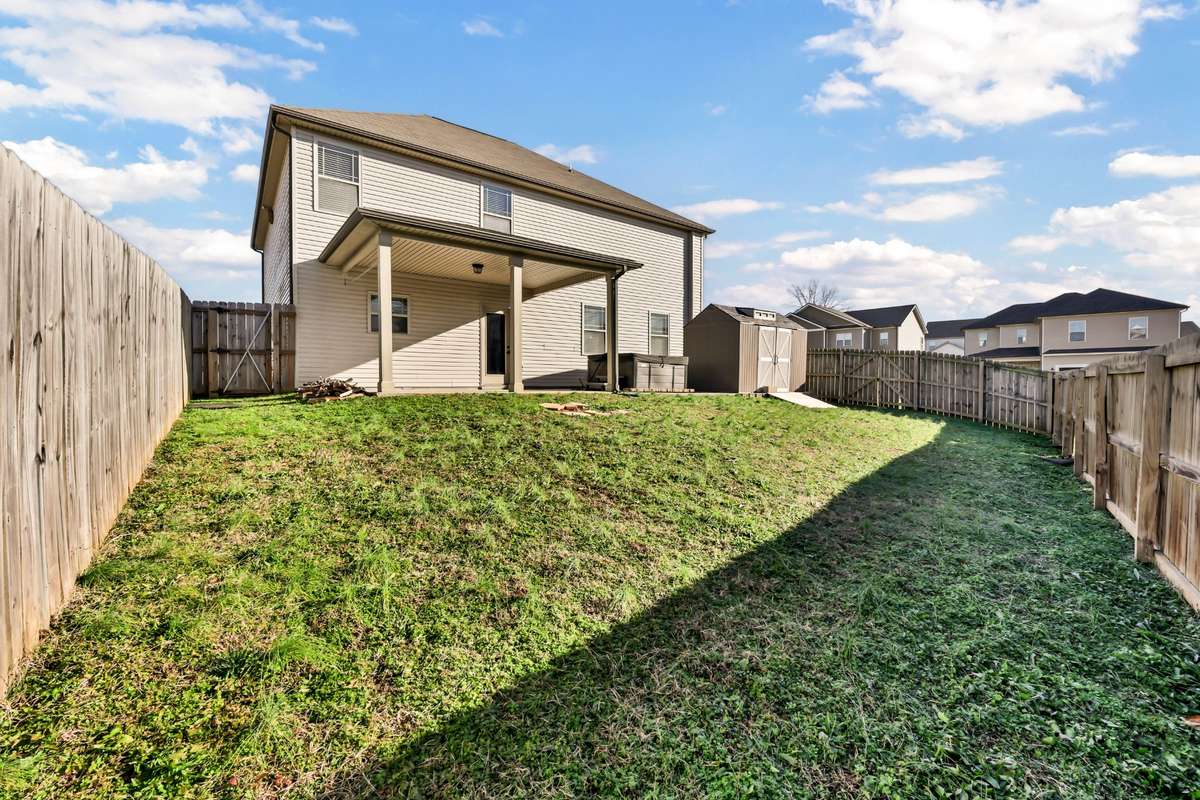 Beautiful corner- lot home featuring 5 bedrooms and 3 full bathrooms. Open kitchen with granite countertops and center island, separate formal dining room, and cozy living room with fireplace. Freshly painted interior throughout. Spacious primary suite offers double vanities and a tiled shower. Enjoy a fenced backyard with hot tub and storage shed, plus a 2- car garage. Washer and dryer convey. Located in a desirable neighborhood with sidewalks and a community playground.