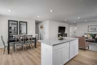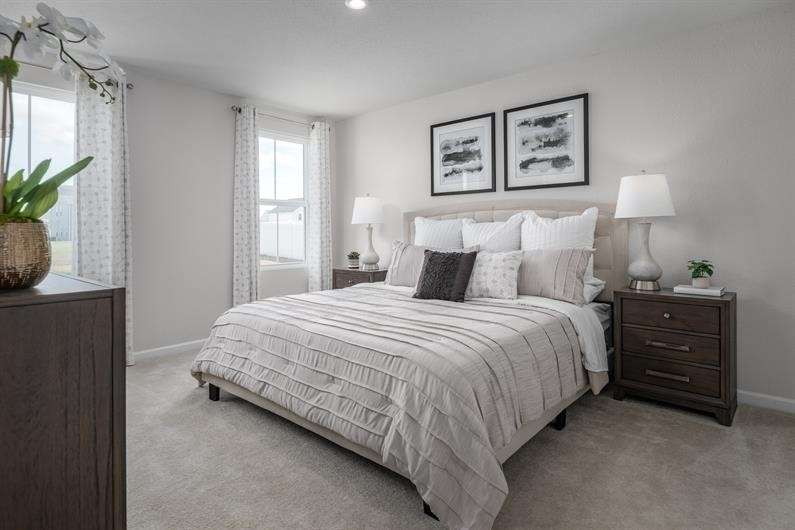 The Tupelo offers the ease of single- level living with a thoughtful layout. The secondary bedroom wing is conveniently located near the front entry and 2- car garage, with the option to convert a bedroom into a home office or flex space. The open- concept design seamlessly connects the kitchen, dining area, and great room, creating a comfortable and inviting space. The owner’s suite, located just off the kitchen, features a private bathroom and walk- in closet, with the laundry room nearby for added convenience.