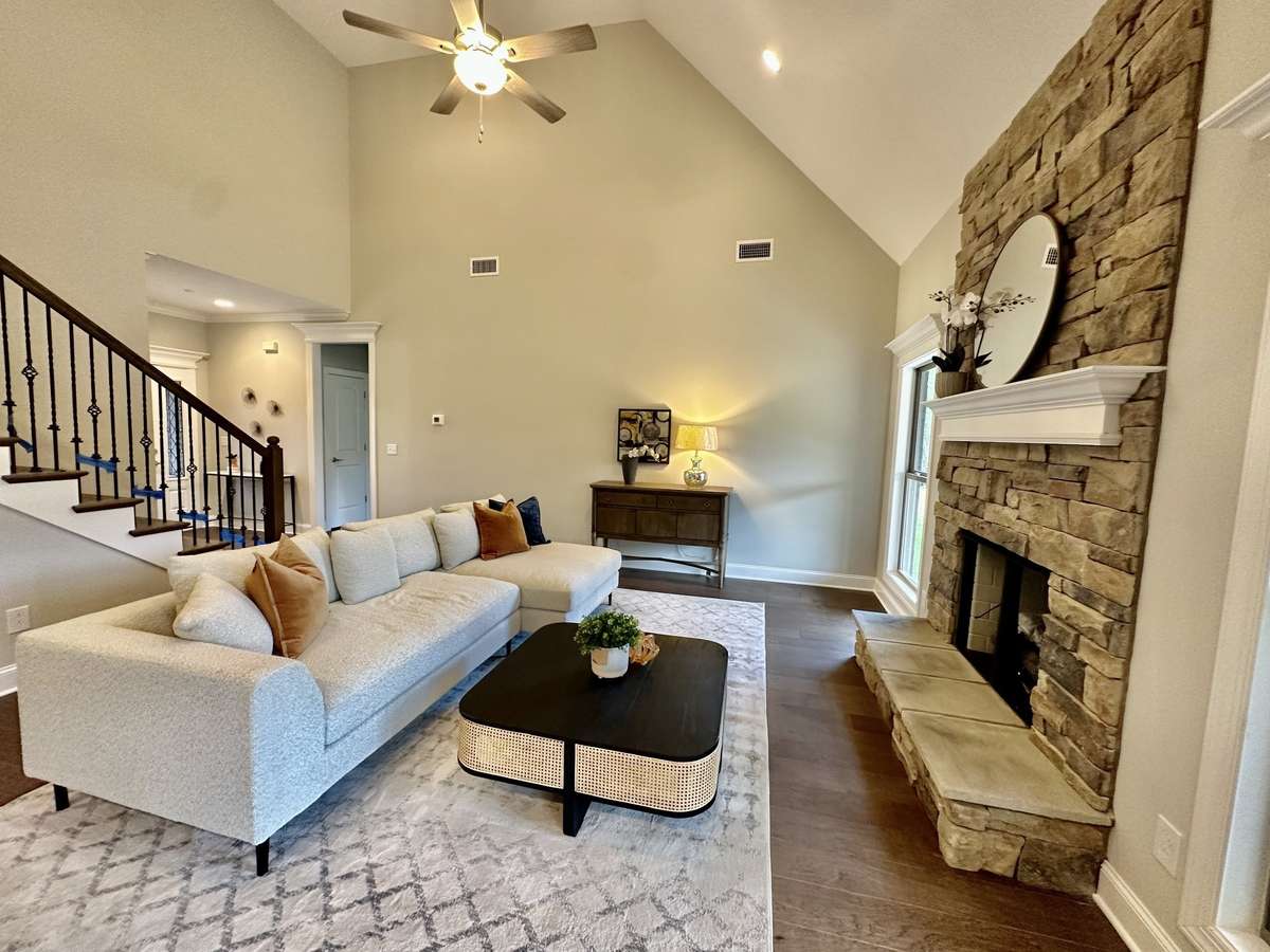 Beautiful all- brick plan with a 3- car garage on a rare corner lot (. 59 acres) in highly sought- after Cascade Falls! This home features an open layout with a spacious living room and cozy fireplace. Offering 4 bedrooms ( 2 down, 2 up) and 3 full baths, this home is designed for comfort and convenience. Both bedrooms downstairs, including the oversized primary suite and second bedroom, feature custom closets. The kitchen and baths showcase custom cabinets with granite countertops, while hardwood floors flow throughout the main level and stairs. The primary suite also includes walk- in closets, a tiled shower, and a luxurious bath. Additional highlights include a welcoming foyer, dining and breakfast rooms, bonus room, tile in all wet areas, and a covered patio for outdoor living. Upstairs couch, washer and dryer, and refrigerator to remain with the home. Zoned for Siegel Schools in Rutherford County!