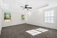 This home is a show stopper! Soaring ceilings in the living area, a formal dining room with detailed trim work, a main floor primary suite, eat in kitchen and a private screened in porch with a tree lined back yard, privacy fence and located on a cul- de- sac! The kitchen has stainless appliances, a bar area over looking the living room and white cabinetry. The primary is equipped with a tile shower, double vanities & walk in closet. Upstairs bedrooms have large closets & a spacious bonus room which could be used as a 4th bedroom. Seller is offering a $ 12, 600 ( 3% ) buyer incentive to be used towards closing costs, rate buy down or upgrades in the home. Minutes to FTC and I- 24 and area schools. NO HOA. Home is completed and ready for new home owners!