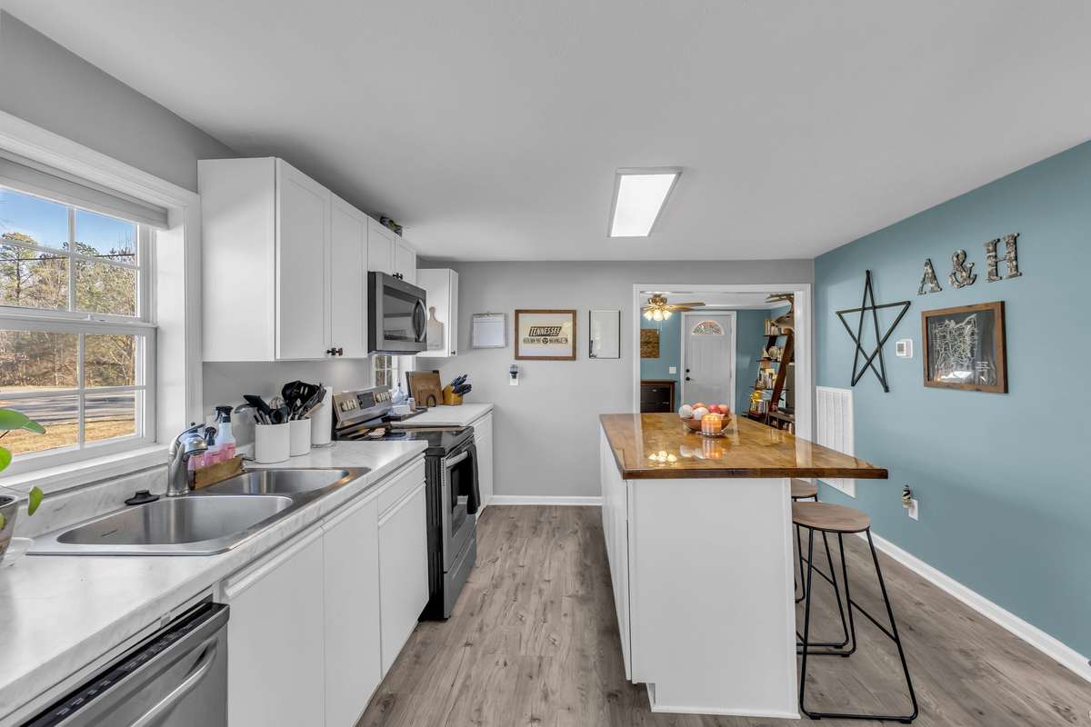 Perfect property for first time home buyers, or downsizing. Home features DOUBLE lot . Metal roof, new gutters, siding, and kitchen island all in two years old. Home has city water option and back up gas available.