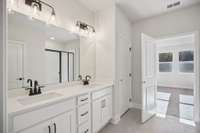 Welcome to the wonderfully designed Equinox plan by Ashton Woods. This beautiful single- story 4 bedroom consumer inspired home comes to you featuring an abundant kitchen, spacious upgraded cabinetry, eclectic backsplash, and large chef' s island. Touched by our Harmony- warm Farmhouse design collection, you will love the perfect mixture of cool and warm finishes that just feel like HOME! Flowing from the kitchen, you will find a generously sized living space for all occasions. For your dining pleasure, you will enjoy the large dining space just off of the kitchen and living space. The primary suite includes plenty of space for your king- sized bed and decor and that tray ceiling is sure to bring the wow factor. The primary bathroom brings luxurious double vanity sinks wrapped in bright quartz countertops, a large step in shower, and generous walk- in closet. The spacious additional bedrooms are ideal for office and/ or a guest space. Enjoy morning coffee and evenings outside on your covered patio. This home is ideal for those seeking elegance, comfortability, and modern touch. Come be a part of thriving Cane Ridge. Just 3 short miles from Tanger outlets, restaurants, parks, interstate 24, and more!