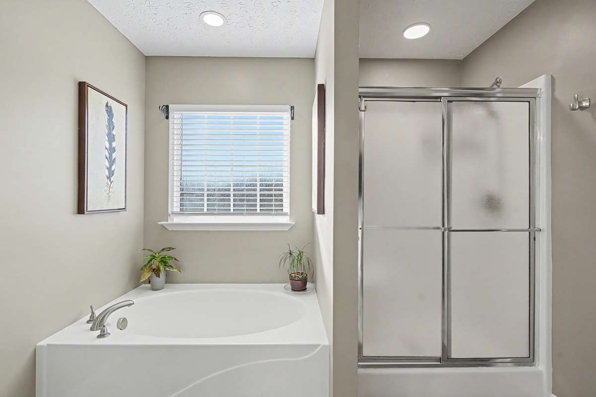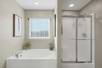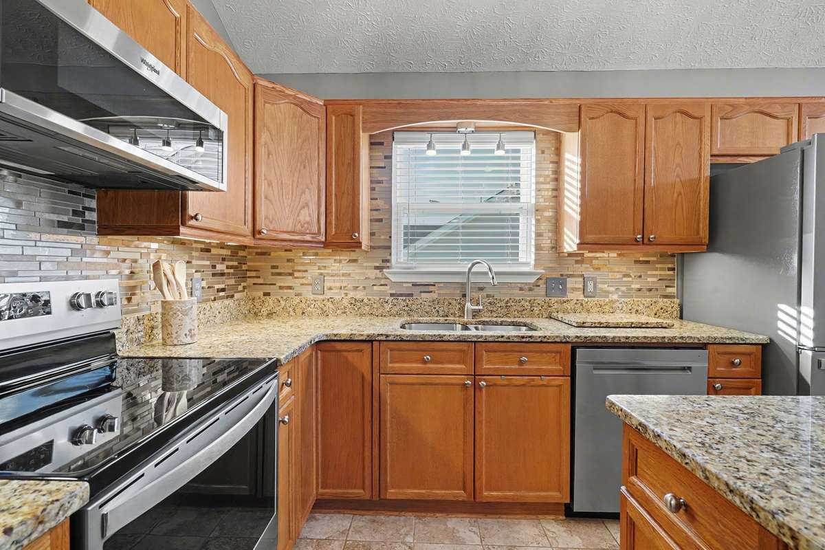 The eat- in kitchen boasts brand new stainless steel appliances, new trim on top and bottom cabinetry, a large breakfast bar, and plenty of counter space. The primary suite is amazing, completed with a spacious bathroom featuring double vanities, a separate shower and soaking tub, and a huge walk- in closet. Secondary bedrooms are well- sized and include generous closet space.