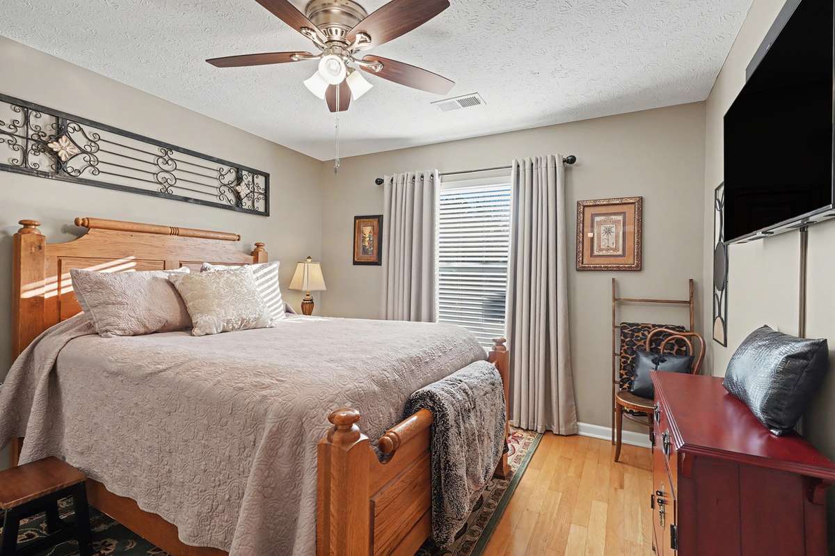 Enjoy outdoor living in the large private backyard with a covered patio perfect for that morning coffee! Additional upgrades include a new hot water heater, storm doors, and ceiling fans, . The HOA offers fantastic amenities, including a clubhouse, pool, gym, and playground. This home offers comfort, space, and a prime location all in one! Bonus, it has extra wide door ways.