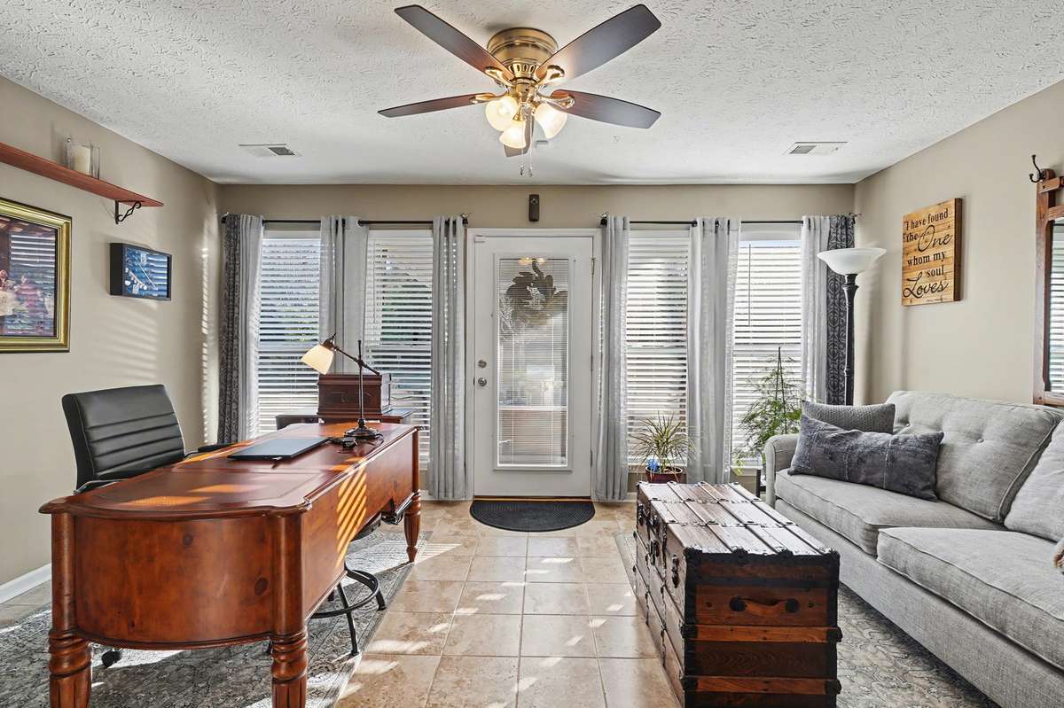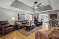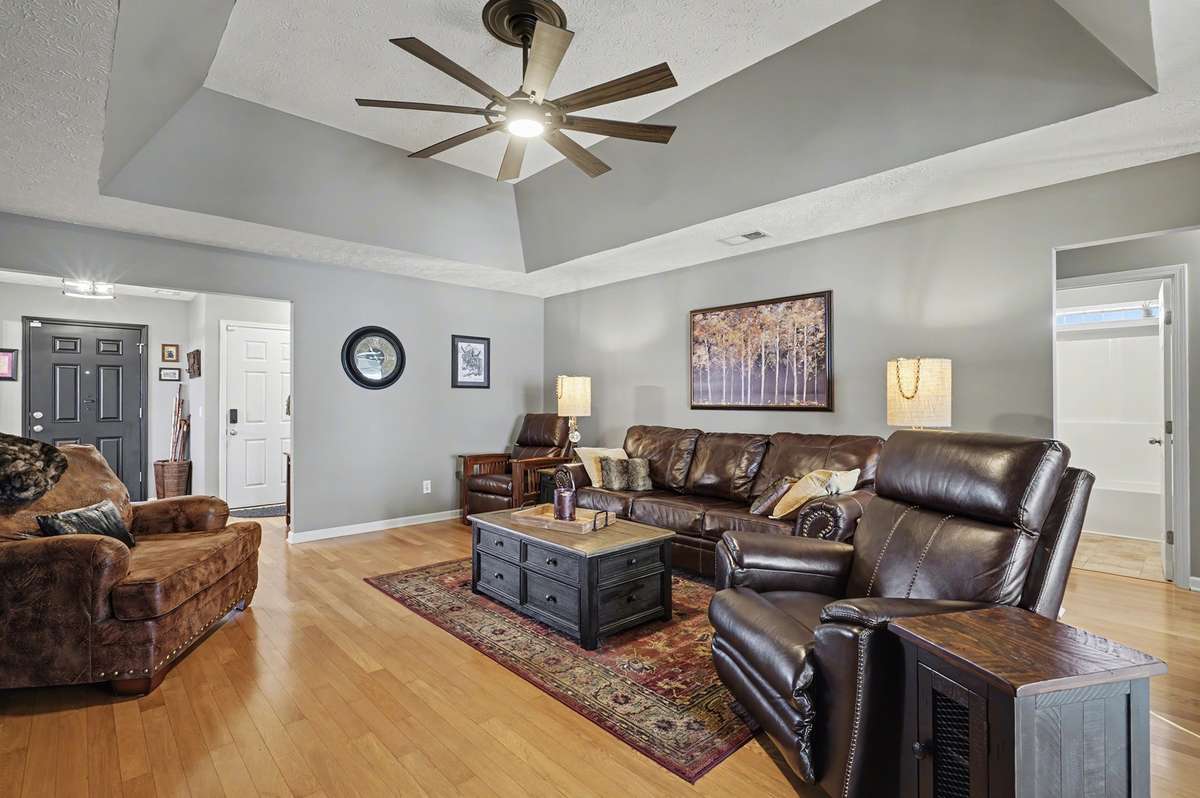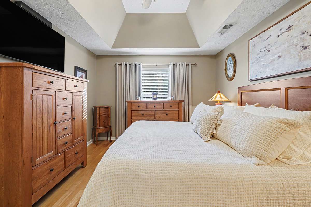 Welcome to this 0 entry one level 3- bedroom, 2- bath home with a sunroom, conveniently located just minutes from Lebanon Town Square and its shopping, dining, and local events. This well- maintained, upgraded home is tucked away on a cul- de- sac. Step into the open living room featuring tray ceilings that create a bright and inviting atmosphere.