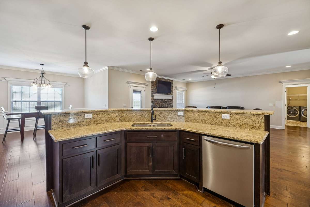 This all brick 4 bedroom, 3 bathroom home has much to offer it' s future family. With a large open living room/ kitchen concept there is perfect amount of space for entertaining. Granite countertops in both kitchen and bathrooms throughout. Laminate hardwood floors downstairs in main living spaces. Master bathroom has His/ Her vanities and closets and offers a large whirlpool tub. Large bonus room with new carpet. Spacious bedroom and full bathroom upstairs, perfect for guests to have their private space.