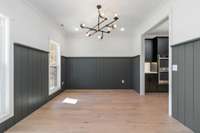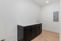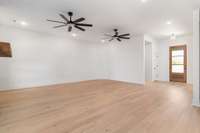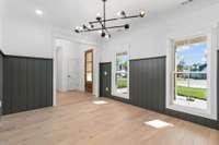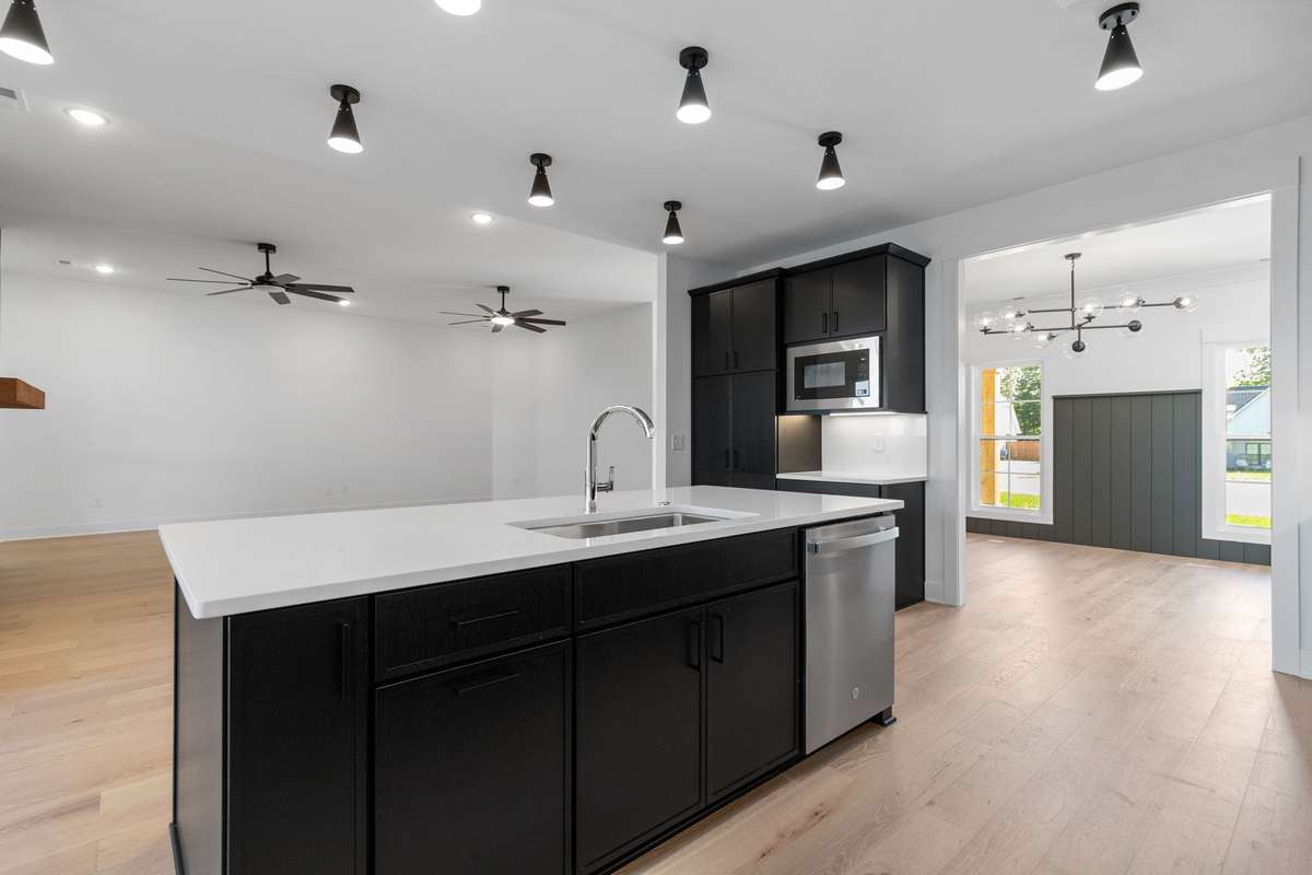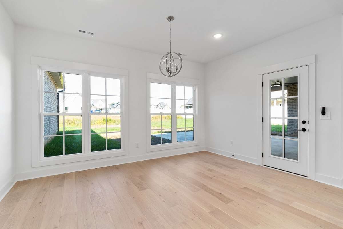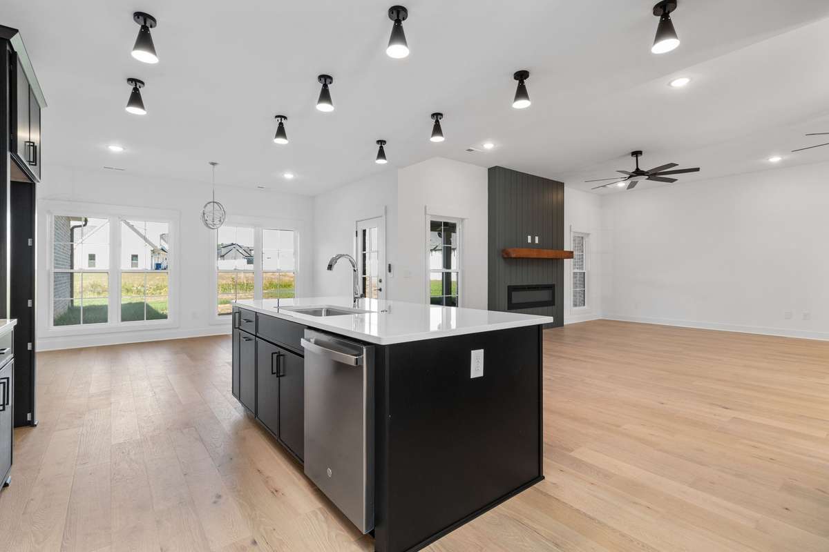 Step inside and fall in love with the chef’s dream kitchen, featuring an abundance of cabinets, a massive island, sleek quartz countertops, and an oversized walk- in pantry with room for an extra refrigerator, freezer, and all your larger appliances. The primary suite shines with an oversized tile shower, custom closet system, and a serene, spa- like feel. Enjoy engineered hardwood flooring throughout the main living areas, a convenient drop zone, and a side- load garage with a generous driveway offering plenty of additional parking. Separate formal dining and oversized laundry room with cabinets and sink. Relax on the covered patio overlooking your backyard—perfect for peaceful evenings or weekend gatherings. This home is tucked away in a newer section of an established neighborhood, just minutes from shopping, restaurants, and the interstate.