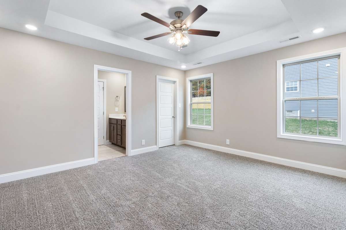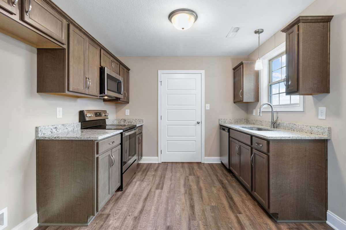 New construction featuring the Sterling floor plan. All bedrooms are conveniently located on the main level, with a spacious bonus room upstairs. The eat- in kitchen offers granite countertops, stainless steel appliances, and a pantry. LVP flooring runs throughout the home with carpeted bedrooms and tile in all wet areas. The primary suite boasts a tray ceiling, large walk- in closet, and double vanities. Enjoy outdoor living on the covered deck. Schedule your showing today!