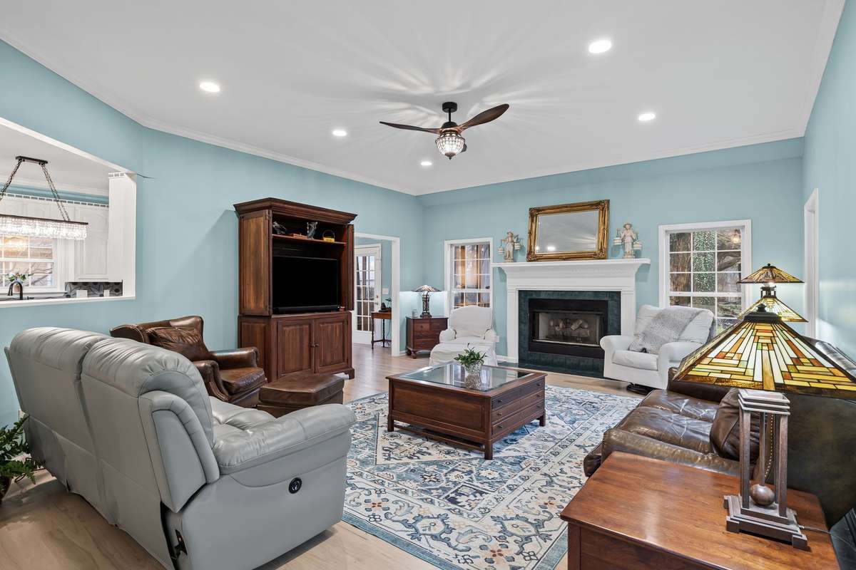 PRICE IMPROVEMENT!! ! Highly sought after subdivision, Hunters Glen! You won' t want to miss this elegantly renovated, single story oasis! This home has it all! New paint in every room, new flooring throughout the entire home, designer light fixtures in every room. Spacious Owners suite includes extra space for possible office/ sitting/ reading area, two walk in closets, new tiled shower, new sinks, toilets and light fixtures! Beautifully renovated chefs kitchen with new granite countertops and plenty of cabinets for storage. XLG stunning Fireplace in spacious living room. Large laundry room. Brand new Roof! Relax on your completely screened in deck in the backyard. Convenient stairway access from the garage to a roomy attic for bonus storage. Attached 2 car garage with sealed floor. All bedrooms are large and have high ceilings AND walk in closets! This house lets you live minutes from town and still feel like you live in the peaceful country! ! Washer/ Dryer and kitchen refrigerator to be included with a full price offer.