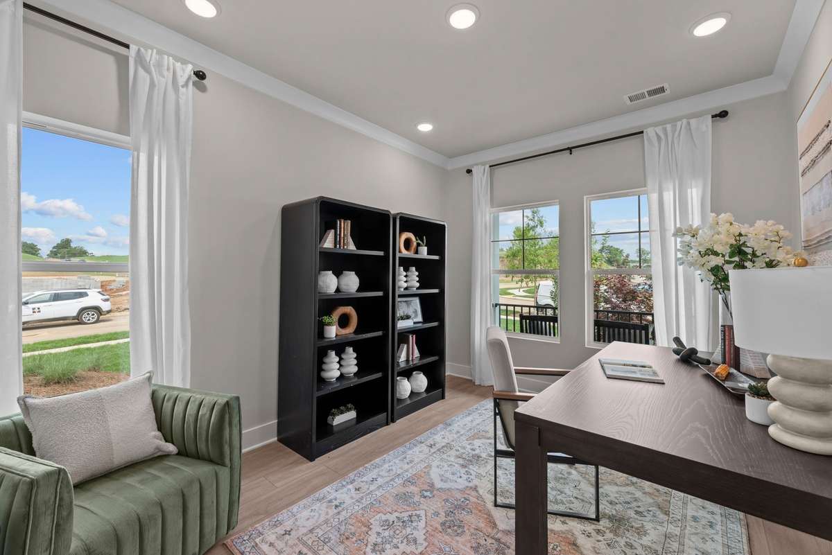 The Irvington floor plan gives you space where it matters most. Downstairs, the open family room, dining, and kitchen make everyday living easy and entertaining fun. The kitchen has upgraded cabinets, quartz counters, a large island- plus plenty of room to gather. The fireplace is the focal point of the living space- making the space feel cozy. There is also a large study that can be closed off with double glass doors- the perfect place for an in home office, library, or playroom.