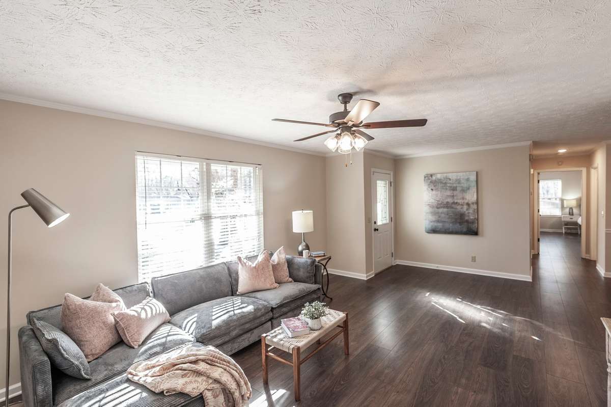 Tucked away on a quiet cul- de- sac, set on a beautifully wooded . 56- acre lot, this classic ranch- style home with a full basement has been completely renovated & is truly move- in ready. Mature trees surround the property, creating a peaceful, private setting while still being close to town. As you arrive, you’ll appreciate the convenience of the attached carport, offering covered parking & easy access into the home. From the carport, you enter directly into a functional drop zone that flows seamlessly into the kitchen—perfect for unloading groceries with ease. Guests will enjoy ample off- street parking & a welcoming front entrance that opens into a fully updated interior. The spacious living room and dining area are open to one another, creating an inviting space for everyday living & entertaining. The dining area sits just off the kitchen & offers direct access to the large screened- in deck, where you can relax & enjoy views of the treed backyard. The renovated kitchen features white cabinetry, granite countertops, abundant counter space, & generous cabinet storage. An eat- in area provides additional seating, & a second door leads to a large, uncovered deck, ideal for grilling or outdoor gatherings. The main level offers true one- level living with no steps at entry, two bedrooms, & two full baths. The primary suite is conveniently located on this level, along with a very spacious laundry room. The full walkout basement expands the living space with a partially finished layout that includes a bedroom, full bathroom, & comfortable living area—perfect for guests, extended living, or a private retreat. The unfinished portion offers excellent storage or workshop space. Step outside to the basement- level patio, an ideal spot to add a swing & enjoy the serene surroundings. Located north of Nashville, this home is minutes from the charming historic downtown square & the fantastic Springfield Greenway, offering the perfect blend of tranquility, convenience, and modern comfort