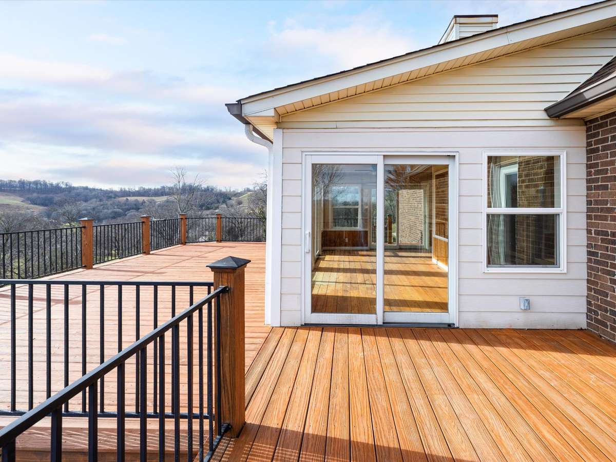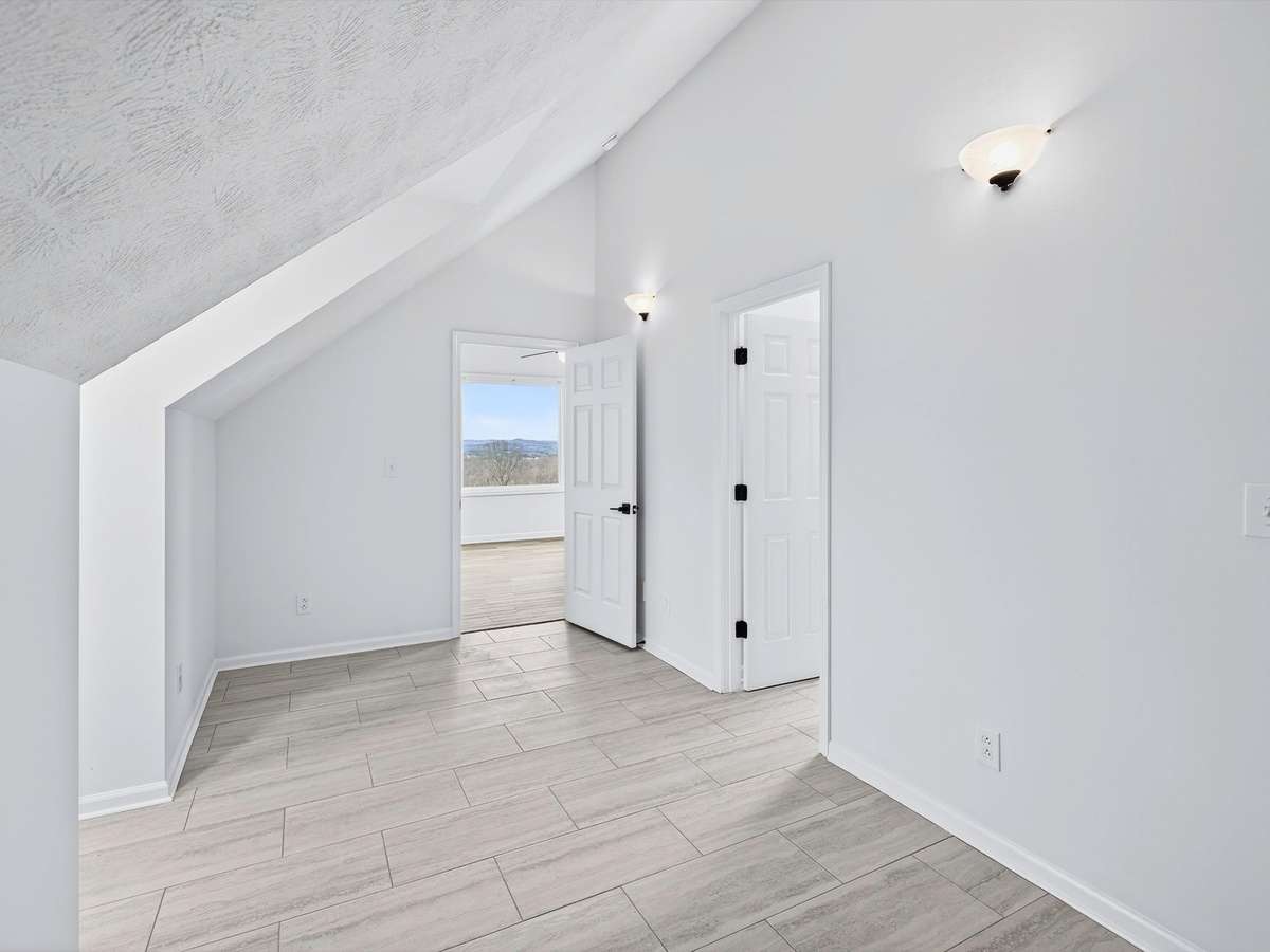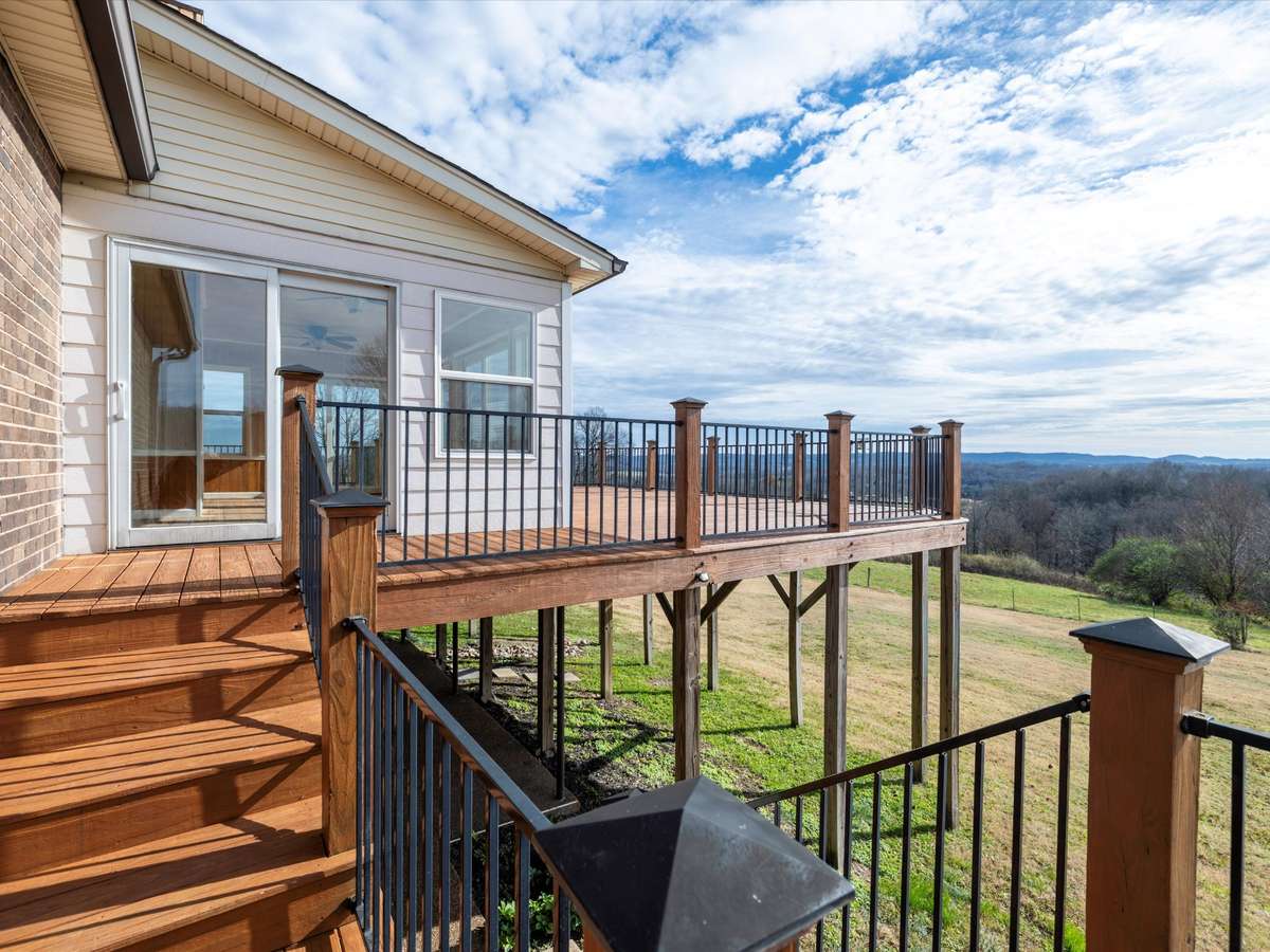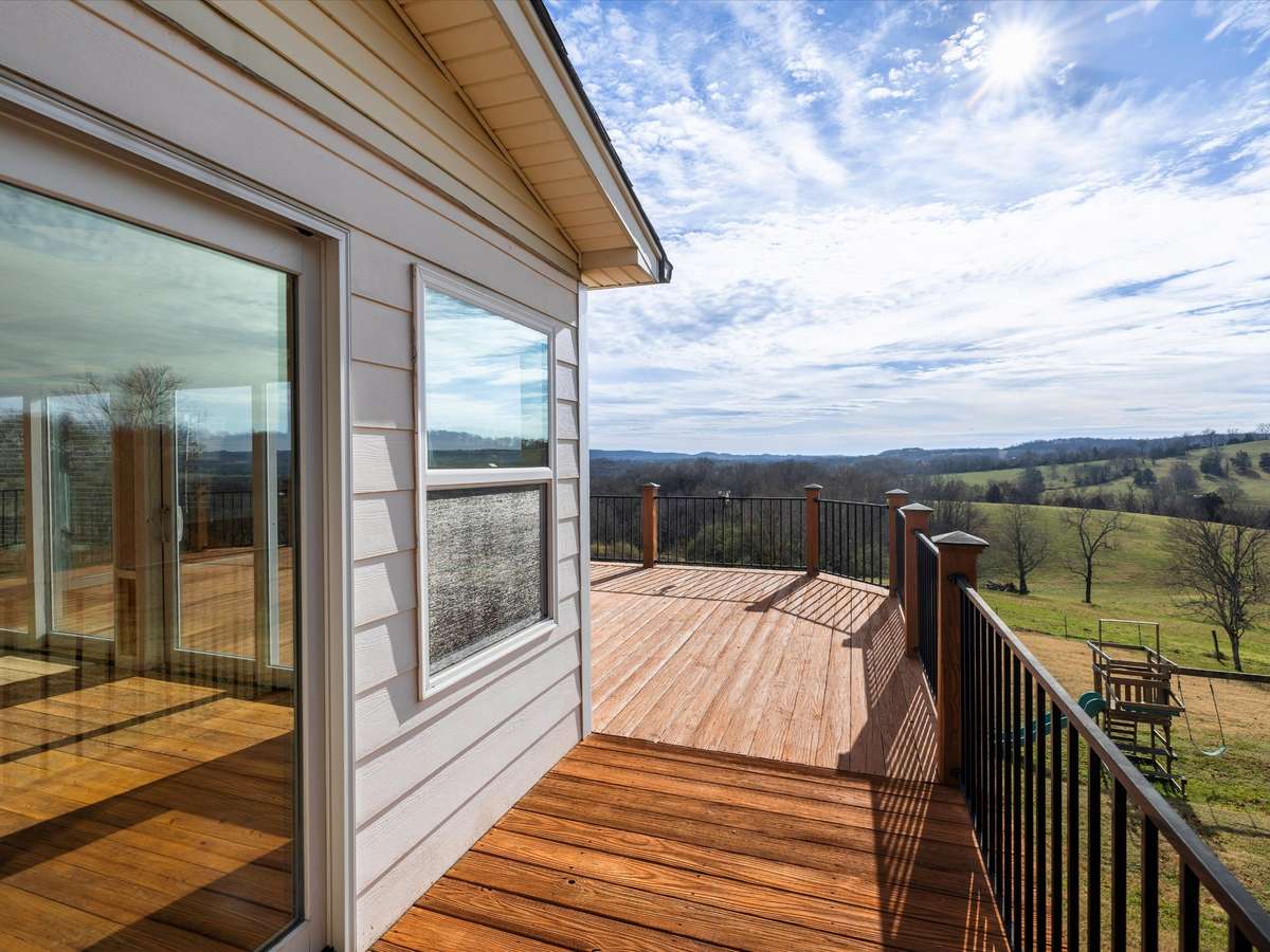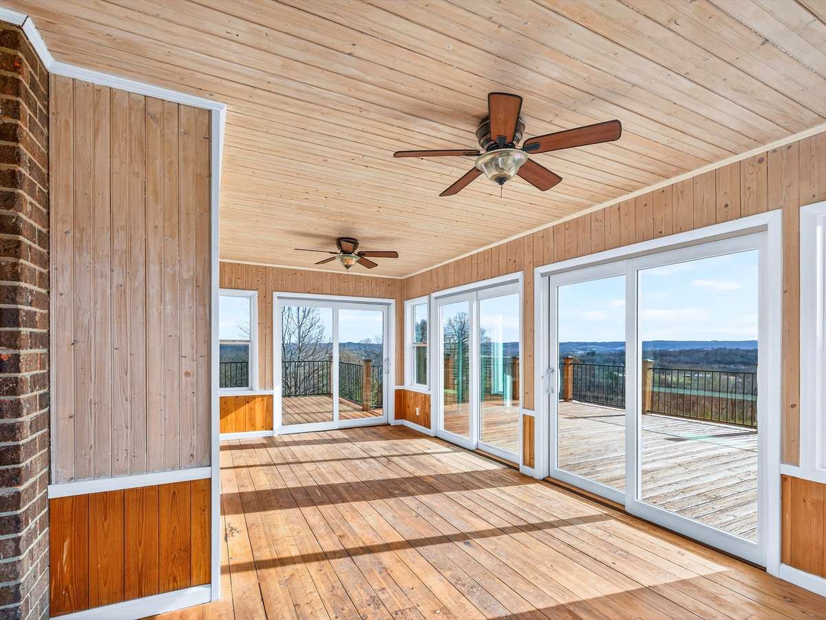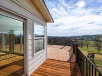 Hilltop retreat with breathtaking views! This 3- bedroom, 2- bath home offers a light- filled layout with fresh paint, updated flooring, and a cozy fireplace. The open kitchen provides generous counter space and is ideal for adding an island. Enjoy an expansive enclosed sunroom wrapped in windows and sliding doors, opening to a spacious deck—perfect for relaxing or entertaining. The private upstairs primary suite feels like a true retreat, plus huge built- in closets throughout and a large laundry room with deck access. Peaceful setting just minutes from town.