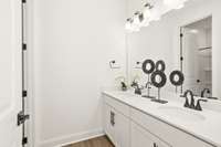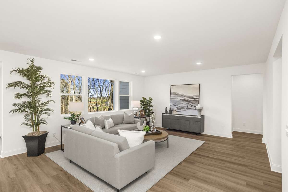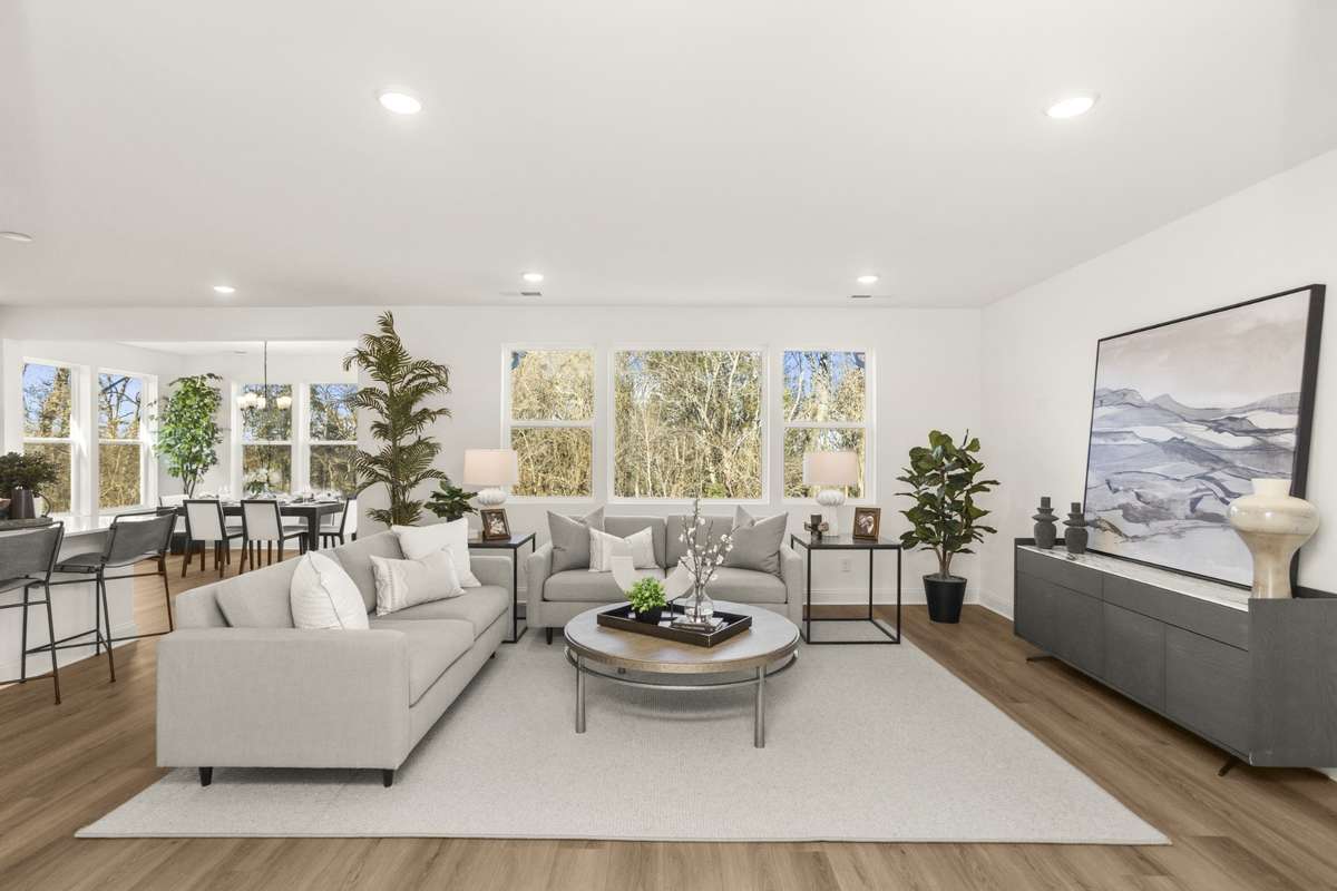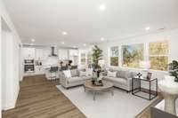 The open- concept great room is ideal for gathering with loved ones — imagine a crackling fire, stockings hung with care, and laughter echoing through the space. The spacious primary suite features a large walk- in closet and a deluxe bath with double sinks — your personal retreat after joyful, busy days.