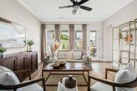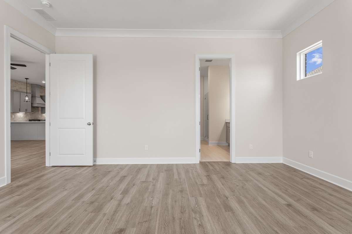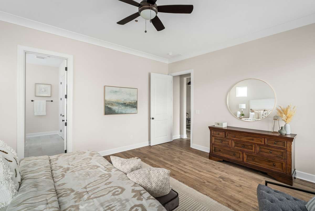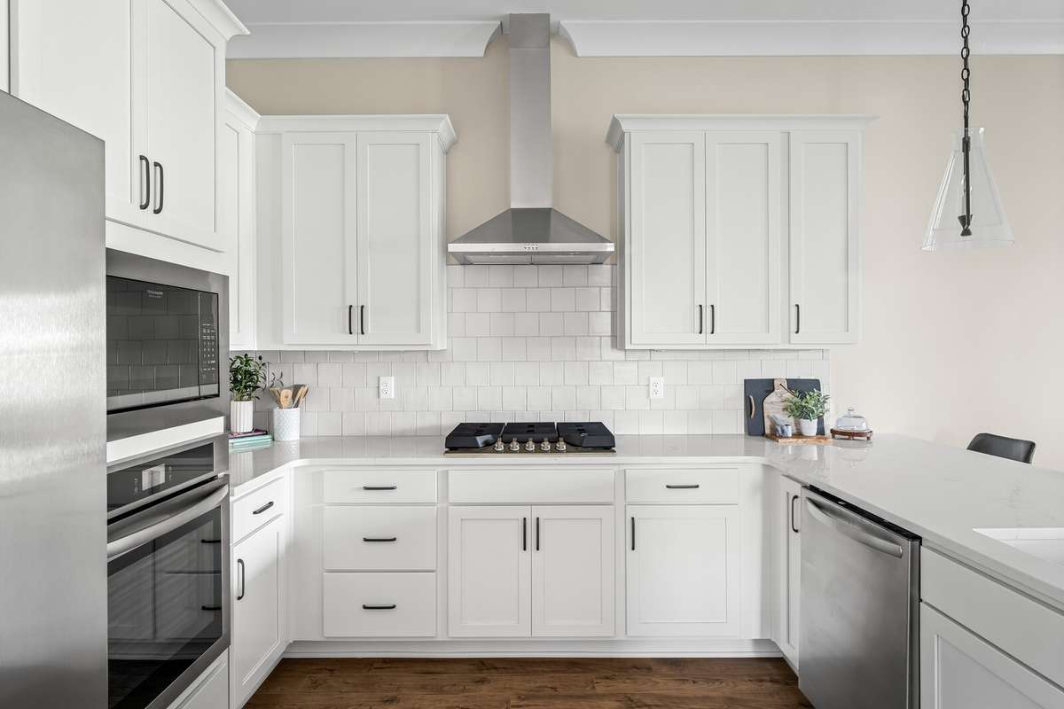 LOT 40 is beautiful Harpeth floorplan with a Media Room. The Harpeth is a designed ranch- style upstairs PLUS a finished daylight walk- out basement that adds both space and versatility. The lower level includes a spacious bedroom with a full bath, a large recreation room, and a dedicated media room—perfect for movie nights, entertaining guests, or even serving as an expansive and secure storm shelter, as it’s completely underground. On the main level, you' ll find a flexible bonus room that can be tailored to your needs—ideal as a home office, formal dining room, or creative space. Soaring 10- foot ceilings and elegant 8- foot doors throughout the home exude a sense of luxury and openness. High- end finishes abound, including quartz countertops, under- cabinet lighting, a pull- out trash drawer, stylish pendant lights, a deep single- bowl composite sink, a gas cooktop, and built- in wall oven and microwave. Hardwood floors run throughout the main level, and ceiling fans add comfort and style to each room. The thoughtfully designed laundry room makes an everyday task more enjoyable, featuring base cabinets for storage and plenty of space to stay organized. The generous primary suite offers a serene retreat with a walk- in shower, large walk- in closet, linen closet, and a separate toilet room for added privacy. Outdoor living is just as impressive, with two spacious covered back porches that invite you to enjoy your morning coffee while watching the sunrise, or relax in the evening with the sunset from your charming southern- style front porch. Finished in striking black- and- white cottage- style exteriors, The Harpeth stands out as a unique and stylish home—offering luxury, comfort, and function all in one.