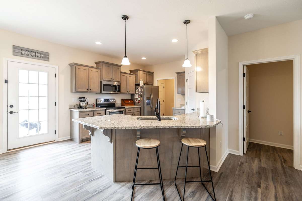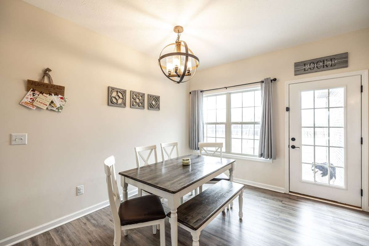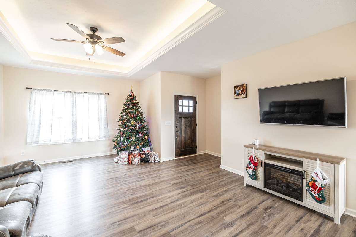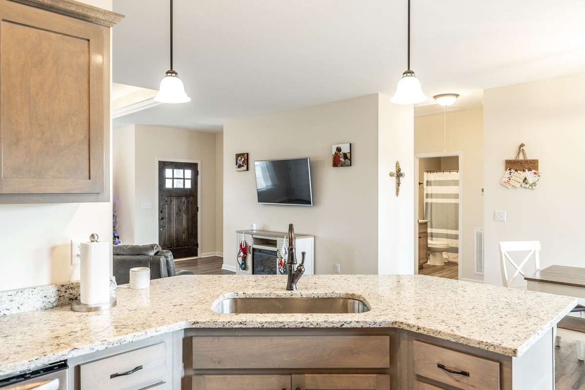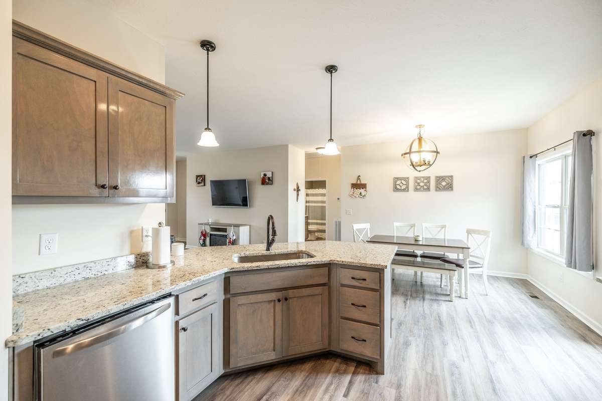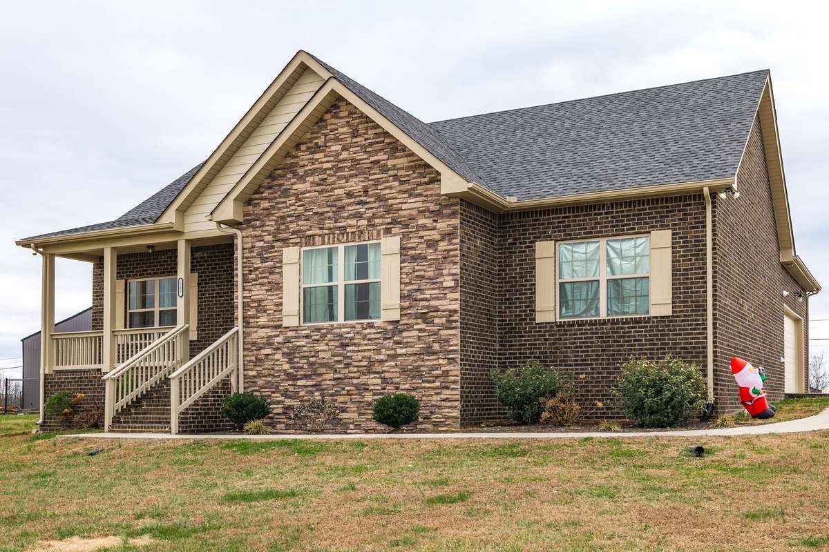 A true find in today’s market: newer construction ( 2022) , all brick, one- level living, huge fenced yard, corner lot, and a rare oversized 2- car garage—all on 1. 29 acres. This one- owner home has been meticulously cared for and offers an open layout, upgraded flooring with no carpet anywhere, granite counters, stainless appliances, and warm cabinetry that makes the kitchen the heart of the home.