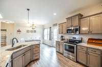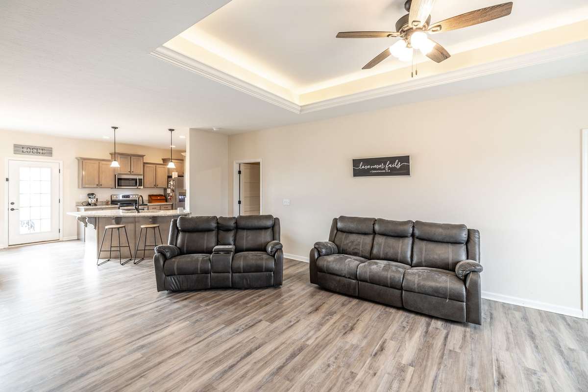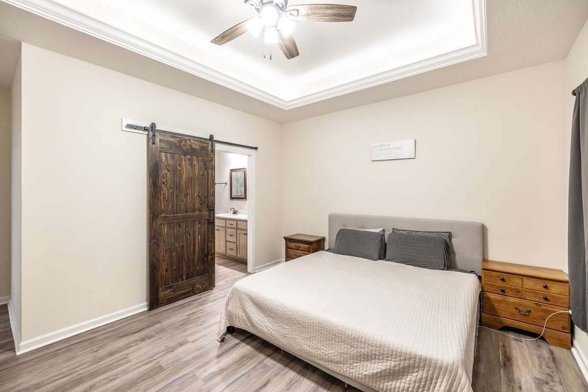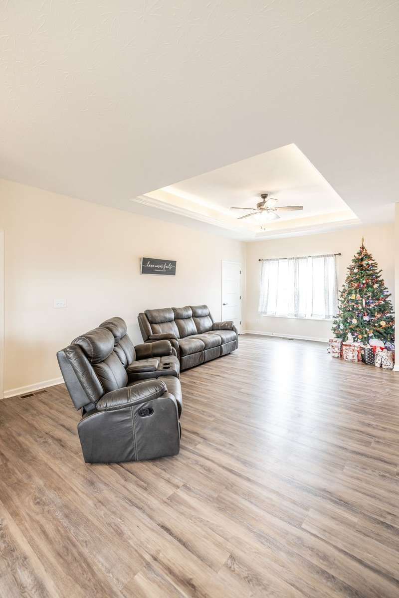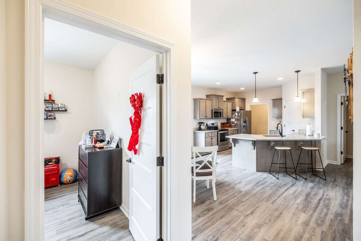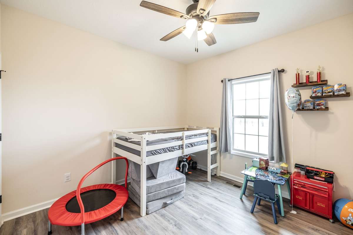 A true find in today’s market: newer construction ( 2022) , all brick, one- level living, huge fenced yard, corner lot, and a rare oversized 2- car garage—all on 1. 29 acres. This one- owner home has been meticulously cared for and offers an open layout, upgraded flooring with no carpet anywhere, granite counters, stainless appliances, and warm cabinetry that makes the kitchen the heart of the home.