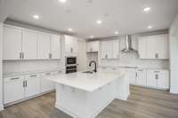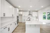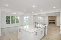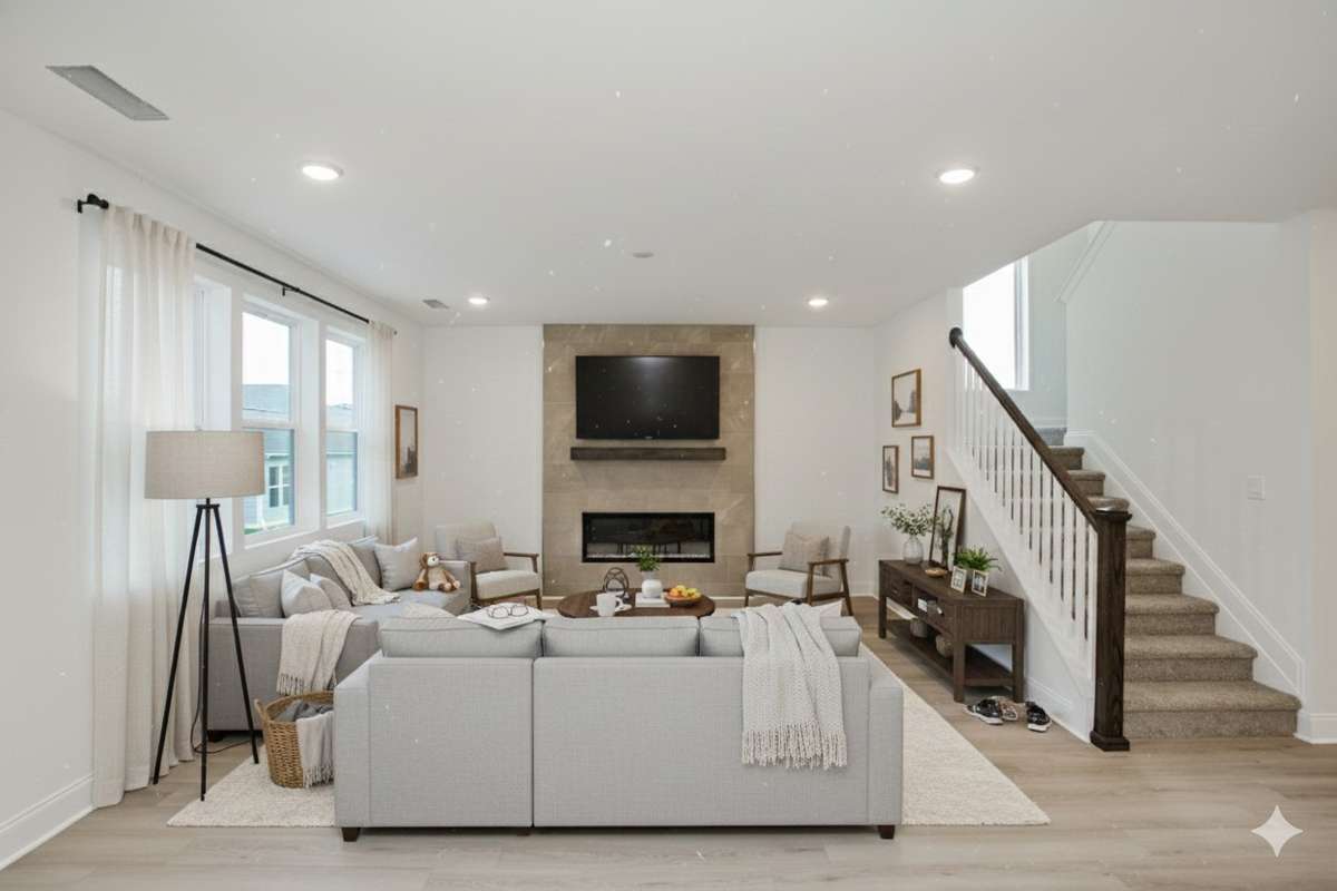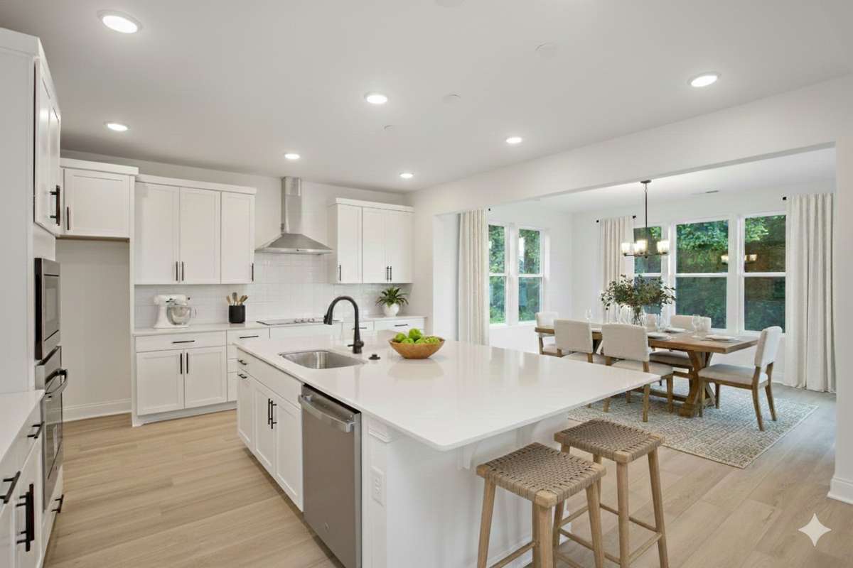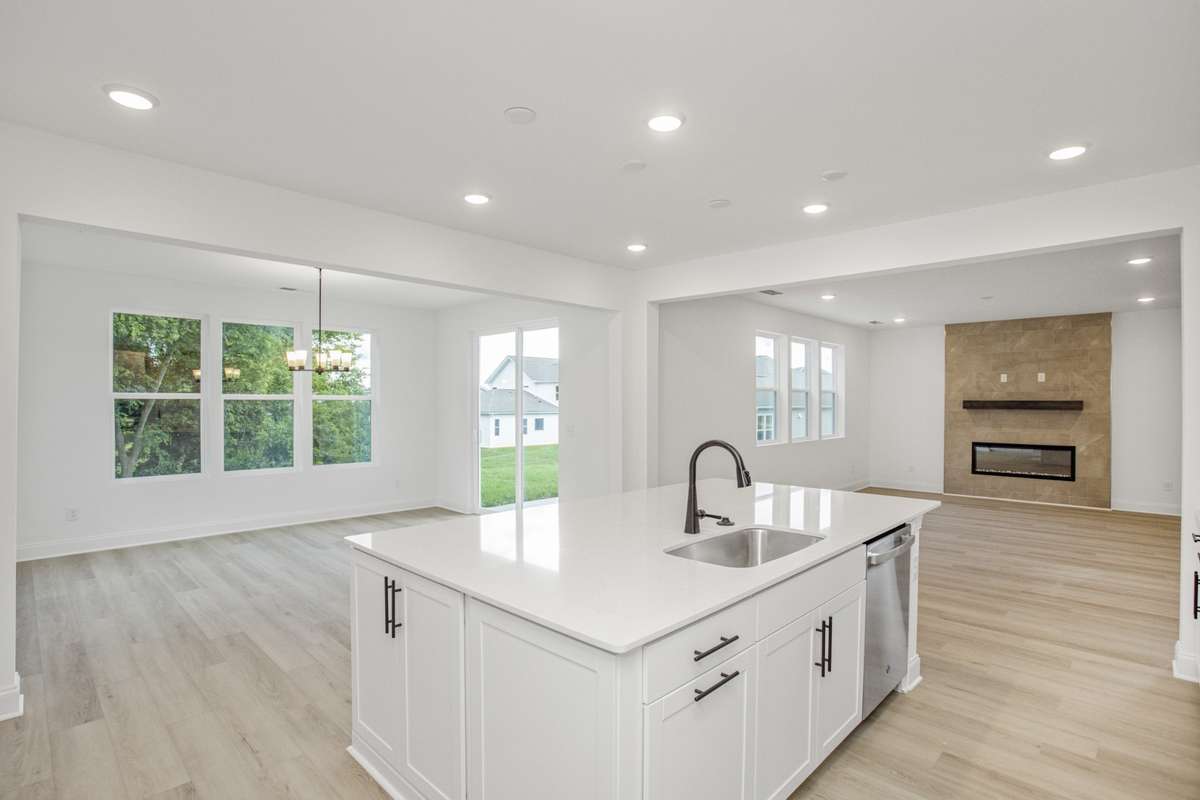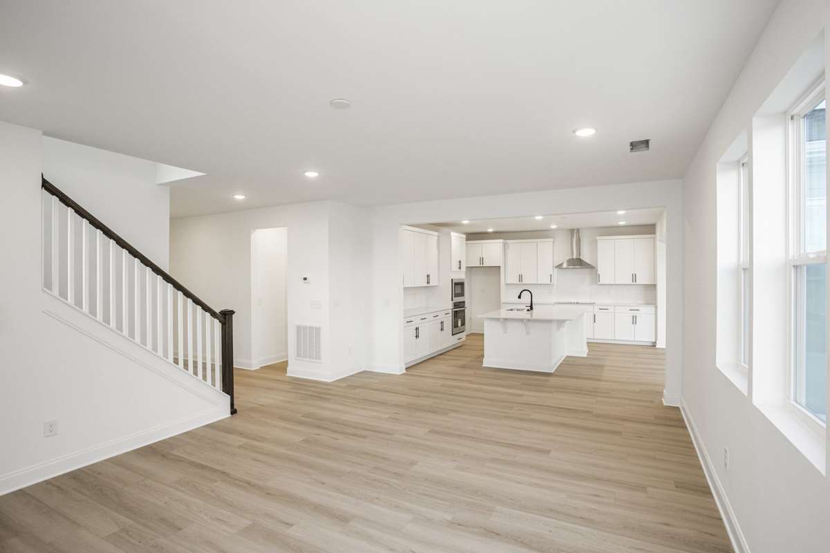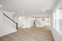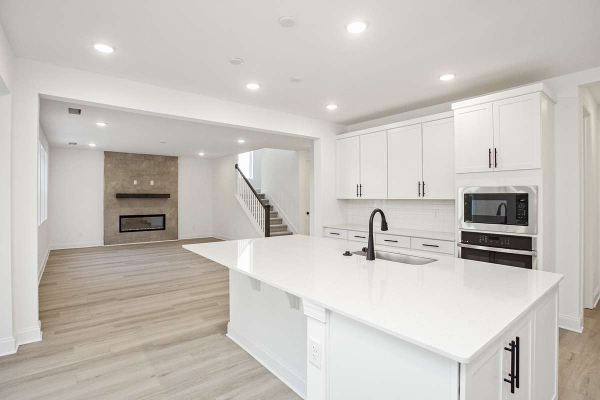 The GOURMET KITCHEN, appointed with all STAINLESS STEEL appliances and a large island, is OPEN to the LARGE GREAT ROOM. This expansive, seamless space is perfect for hosting gatherings, holiday feasts, or simply unwinding at home. A half bath is conveniently located downstairs for guests.