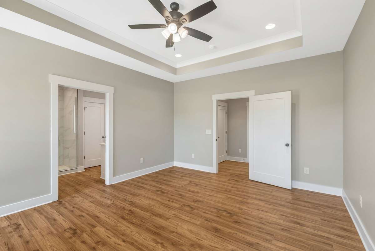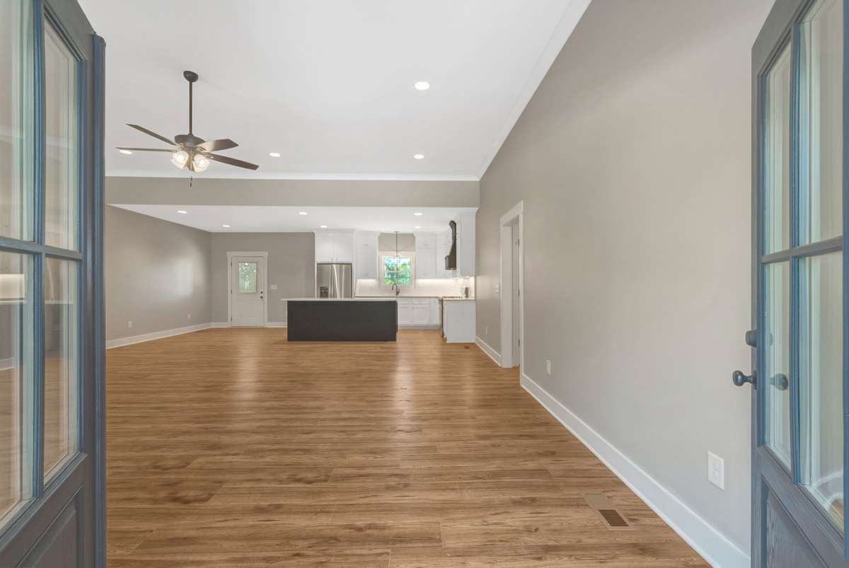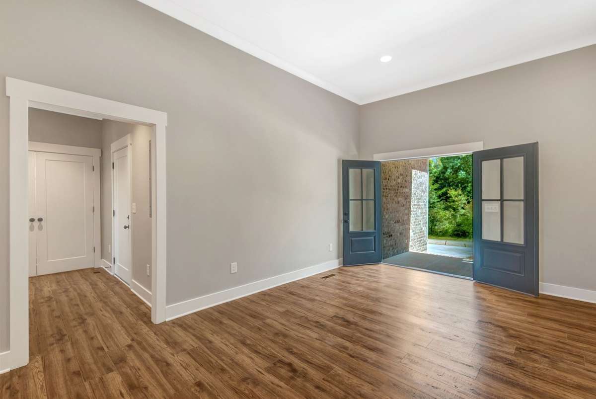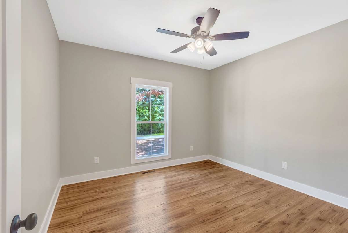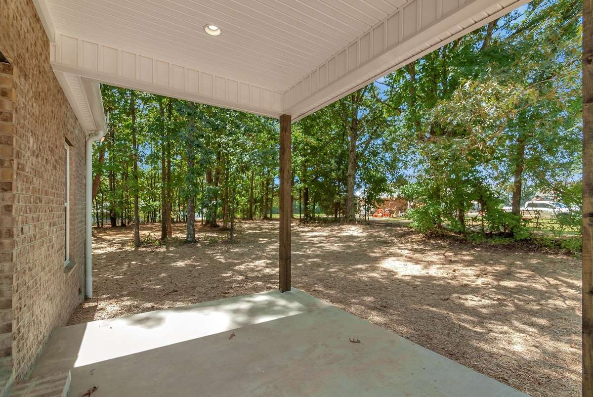 Beautiful all- brick 3 BR, 2 BA home on a 1. 04- acre wooded corner lot. Features include quartz countertops, laminate wood flooring, 9–11 ft ceilings, and a gourmet kitchen with oversized island, floor- to- ceiling soft- close cabinetry, stainless appliance package including gas stove, and a pantry closet. Primary suite offers a tray ceiling, 8x8 walk- in closet, dual vanities with LED mirrors, and tiled shower. Covered porches, an encapsulated crawlspace, on- demand hot water, and concrete drive complete this stunning home. Receive up to 1% Lender Credit using the builders preferred lender—just 2. 5 miles from Hwy 64!