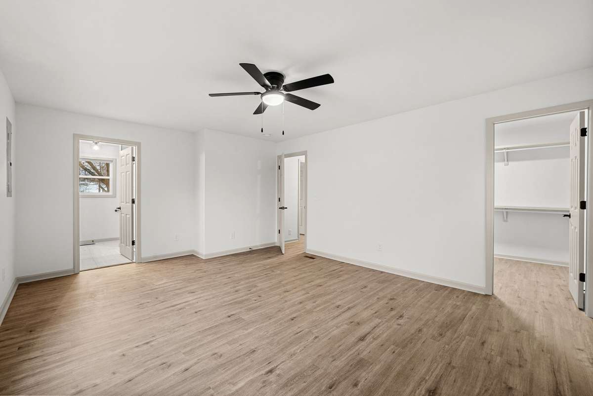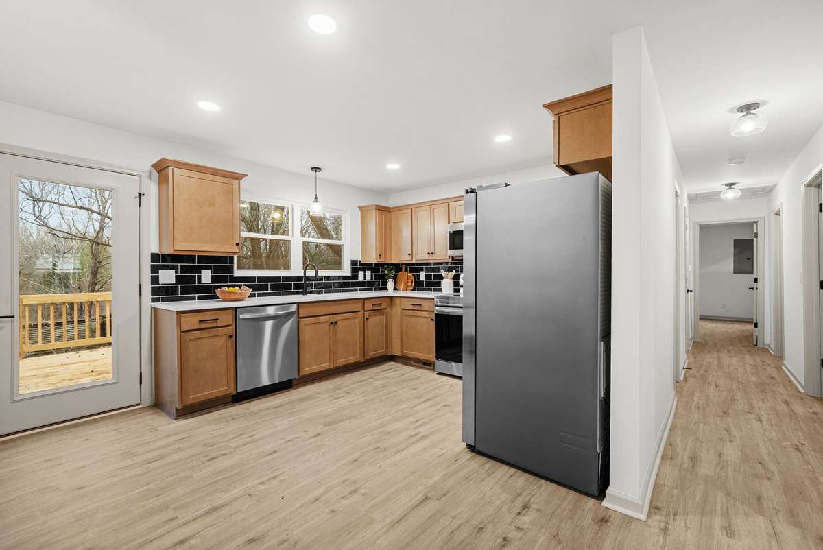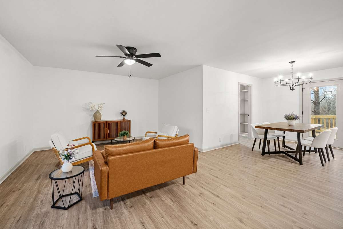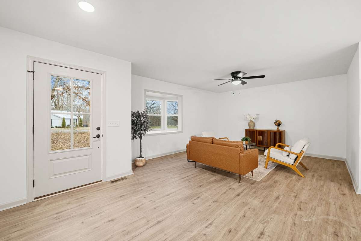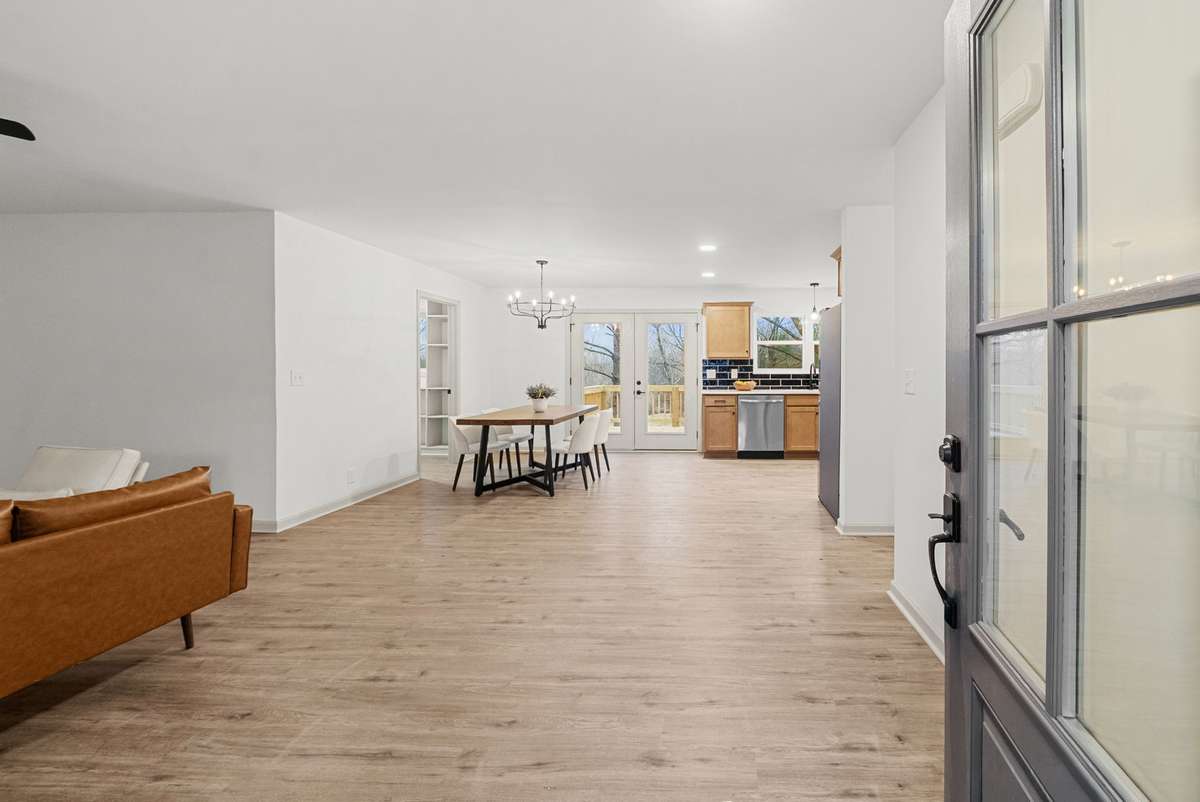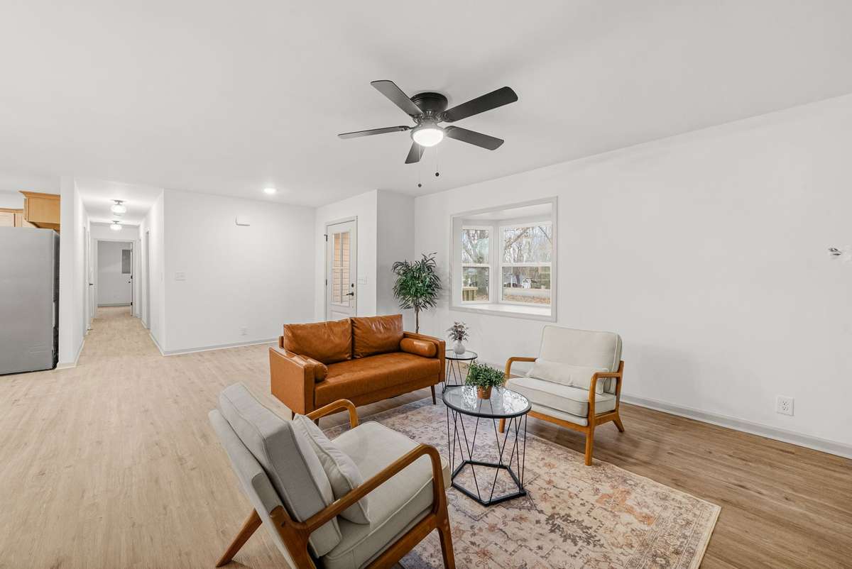 Completely renovated and move- in ready, this stunning home offers modern style and peaceful living on 3 gorgeous acres! Inside, large windows provide ample natural light throughout! The home flows seamlessly through the large living room to the open concept dining/ kitchen area. In the kitchen, you’ll find beautiful quartz countertops, fashionable cabinetry, modern finishes, and a generously sized pantry—perfect for storage and organization. The primary bedroom has abundant space and includes a oversized closet with custom shelving and a bathroom with a sleek stand- up tile shower and a double vanity sink!