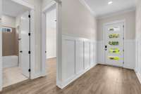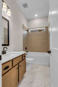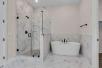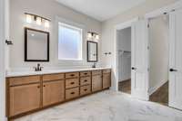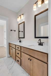 The main floor is home to the primary suite, offering a private retreat with luxurious finishes. An additional office space on the main level is perfect for remote work or study. Upstairs, you’ll find Jack- and- Jill bathrooms connecting spacious secondary bedrooms, and a walk- in storage room for easy organization.