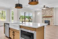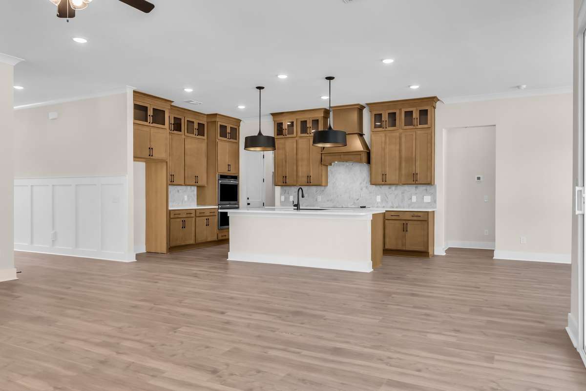 Step inside and you’ll find 10- foot ceilings, a bright and open great room, and a chef- inspired kitchen with a large pantry and easy flow to the mudroom and laundry. The main- level primary suite is your private retreat, while an office/ flex space adds the perfect spot to work or study from home.