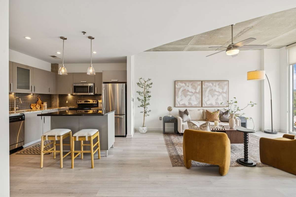 SELLER OFFERING $ 2000 CREDIT TOWARD BUYER CLOSING COSTS, RATE BUYDOWN. Welcome to urban living in the vibrant, sought- after neighborhood The Gulch. This sun- filled condo delivers style, comfort, and an unbeatable location in the heart of Nashville. The private balcony welcomes west- facing sunset views— perfect for your evening city views. Featuring one, private bedroom with a custom closet for ample storage and 9- foot ceilings throughout. Plenty of gathering space in the kitchen and open living area. Icon amenities are elevated for enjoyment and relaxation, as well as useable work or entertaining space in the community lounge and kitchen. Nashville’s largest Skydeck and outdoor pool terrace hold grilling stations, fire pits, outdoor TVs, and city views. Courtyard pool and fitness center on the 4th floor. An additional pool and rooftop patio are on the 9th floor, with a second fitness studio on the 10th floor. Controlled access parking garage with reserved parking for owners. 24- hour Concierge.