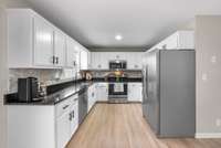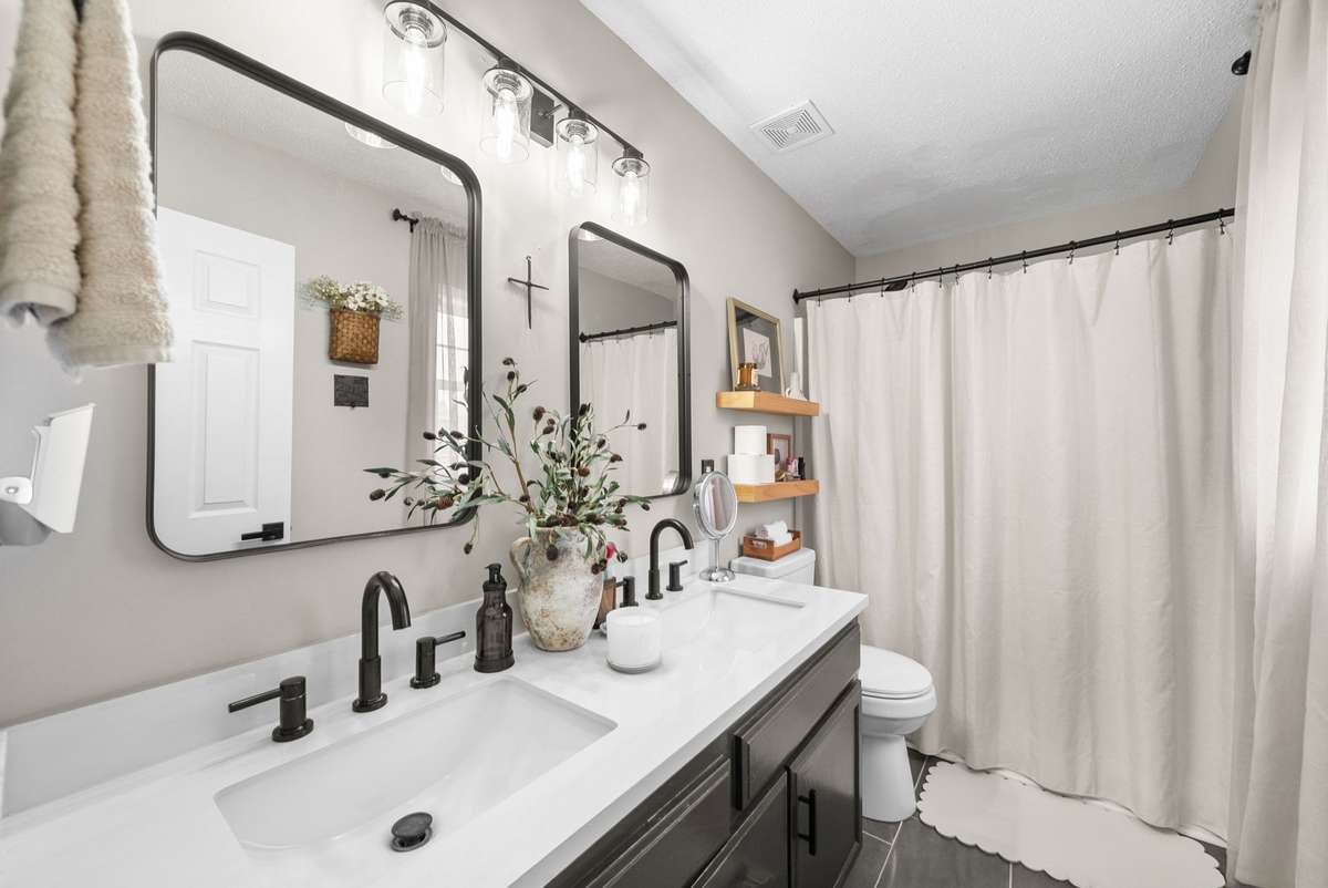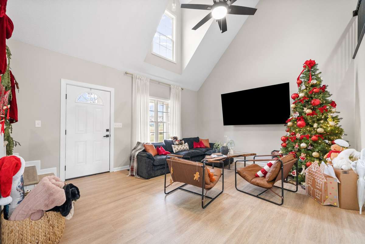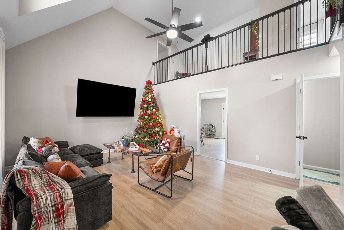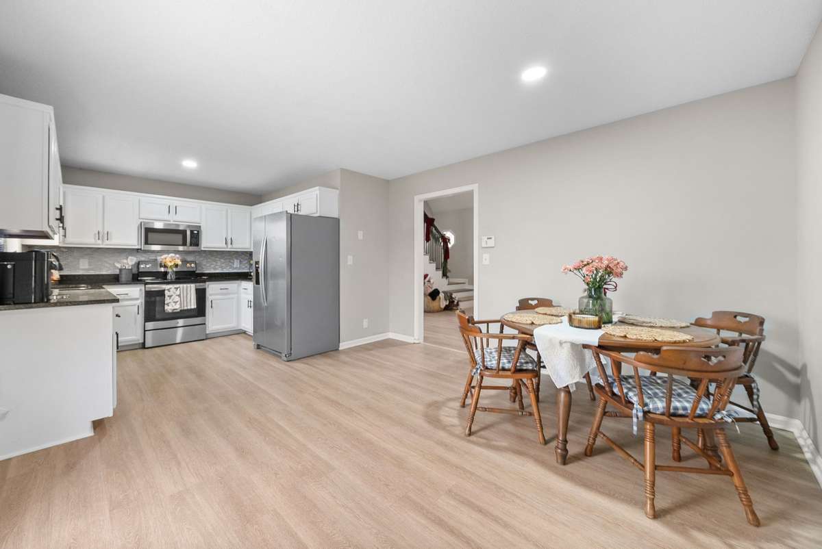 Spacious home offers very large bedrooms and a beautiful flat backyard! The desirable floor plan offers privacy with a main floor primary bedroom with an ensuite bath and generous closet space. Soaring ceilings and an attractive stair railing with bull nose treads leads you upstairs, where you' ll find two additional bedrooms with a shared bath in a floor plan that offers an abundance of privacy and flexibility. Washer/ dryer to convey! This home was remodeled a year ago! A covered front porch beckons visitors and adds curb appeal. Epoxy coating on garage floor and an extra parking area in the generous driveway allow for parking for the guests that are sure to enjoy the entertaining spaces inside and outside this updated home! Don' t wait to capture your opportunity to enjoy the half acre plus yard in a convenient location!