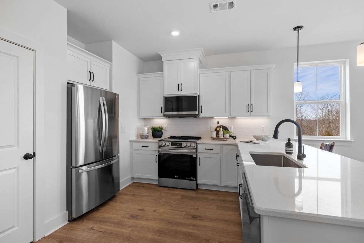 FINAL PHASE! Gatlinburg- style views just 20 mins from West End! Welcome to Ridgecrest at Riverwalk—a scenic view new construction community. This luxury townhome features a huge owner’s suite w/ walk- in closet & oversized tile shower, open concept living, and a finished attached garage. The kitchen includes quartz counters, soft- close cabinets ( made in TN!) , and generous counter space open to the living & dining areas—perfect for entertaining or a home office setup. Enjoy beautiful hard surface flooring, natural light, and upgraded finishes throughout. Community perks: 3 pools, walking trails, playground, and a greenway along the river. Ridgecrest offers the best of Bellevue—nature, luxury, and convenience all in one!