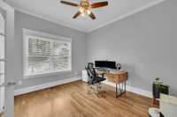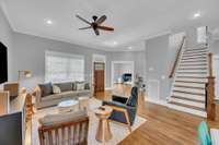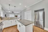 Step inside to a bright open floor plan, where the kitchen—complete with abundant cabinetry and an oversized pantry—flows seamlessly into both the dining and living areas. The primary suite on the main floor offers comfort and privacy, while a second bedroom/ office on the first level provides the ideal space for working from home or hosting guests. Upstairs, you’ll find two generously sized bedrooms, another room being used as a bedroom that doesn' t have a closet, a spacious rec/ media room, and a charming playroom/ reading nook—plenty of room for everyone to spread out. High quality projector and screen in the bonus room makes for a great and cozy movie night.