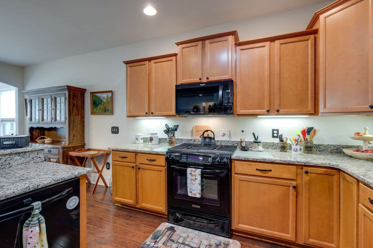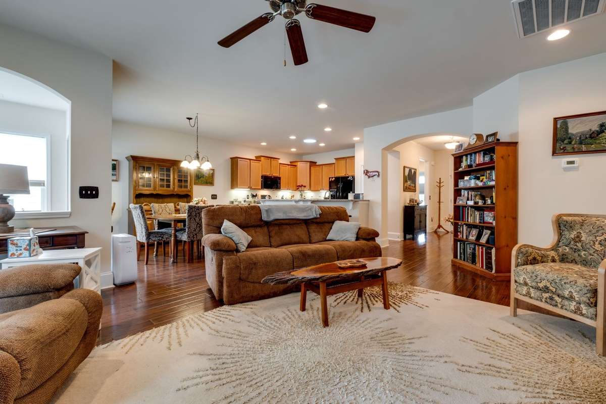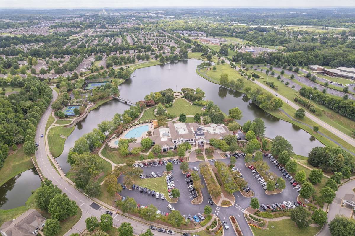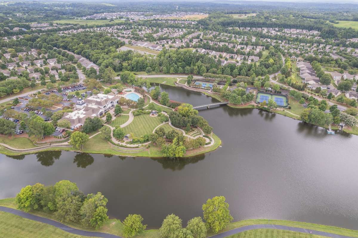 Gated Resort style living in Del Webb Lake Providence 55+ active community with 80 clubs to keep one active. Beautiful Copper Ridge floor plan, 2bd, 2 ba + office, extended 4 ft garage, sunroom, beautiful hardwood, grey granite countertop, under cabinet lighting, new microwave. Walk in master closet, blackout curtains in the bedrooms, tile master shower. Front door storm/ screen door. Stamped concrete back patio 30 x10 across the back side of the house, fenced yard 39x11, for your pet. Back yard included mature crepe myrtles as well as an electric mower. Washer and dryer included. Attic storage above the garage with pull down steps. Bonus extra 4 feet of garage storage space which is rare.