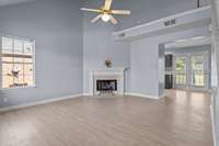 Move- in ready and available now in Bellevue. This inviting 3BR/ 2BA home features a vaulted living room with a wood- burning fireplace, newer fixtures, and durable laminate flooring throughout. A spacious bonus room offers flexibility for a home office, playroom, or second living area. Enjoy a fenced backyard, 10x10 storage shed, and two- car garage, all just minutes from Bellevue shopping, dining, and commuter routes.