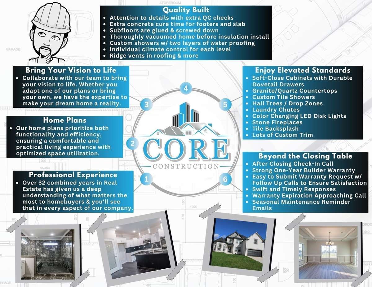 " The Presley" Built by Core Construction LLC. All Brick Home on 1. 14 Acres & County Taxes Only! 3 Car Garage & 6 Bedrooms!! ! Spacious Entry Foyer w/ Wood Flooring! Large Living Rm w/ a Stone FP, Floating Mantle & Beautiful Hardwood Stairs! Open Kitchen Features a Huge Island w/ a Bar- top, Double Oven, Cooktop, Granite Tops, Under Cabinet Lighting & a Walk- in Pantry w/ a Decorative Glass Door! Spacious Formal Dining Rm w/ Wainscoting & a Coffered Ceiling! Primary Suite on Main Level & Features Wood Flooring, a Double Tray Ceiling, Large Tile Shower w/ a Bench & Glass Enclosure, Soaking Tub, Double Vanity, Huge Walk- in Closet, Linen Closet & a Toilet Closet! Spacious Guest Room Downstairs w/ a WIC & Full Bathroom Across the Hall! Large Laundry Rm w/ a Laundry Chute! Mud Rm Off the Garage w/ a Hall- tree! Upstairs Features 4 Large Guest Rooms ALL w/ Walk- in Closets, 2 Full Bathrooms BOTH w/ Double Vanities, Lots of Attic Storage & a Laundry Chute! SPC Wood Flooring Throughout Main Areas, Tile in all Wet Areas, Crown Molding, Custom Trim & TWO Hot Water Heaters! Eave Lighting Illuminates the Front Elevation & a Large Covered Patio Provides Backyard Enjoyment! A Must See!