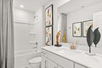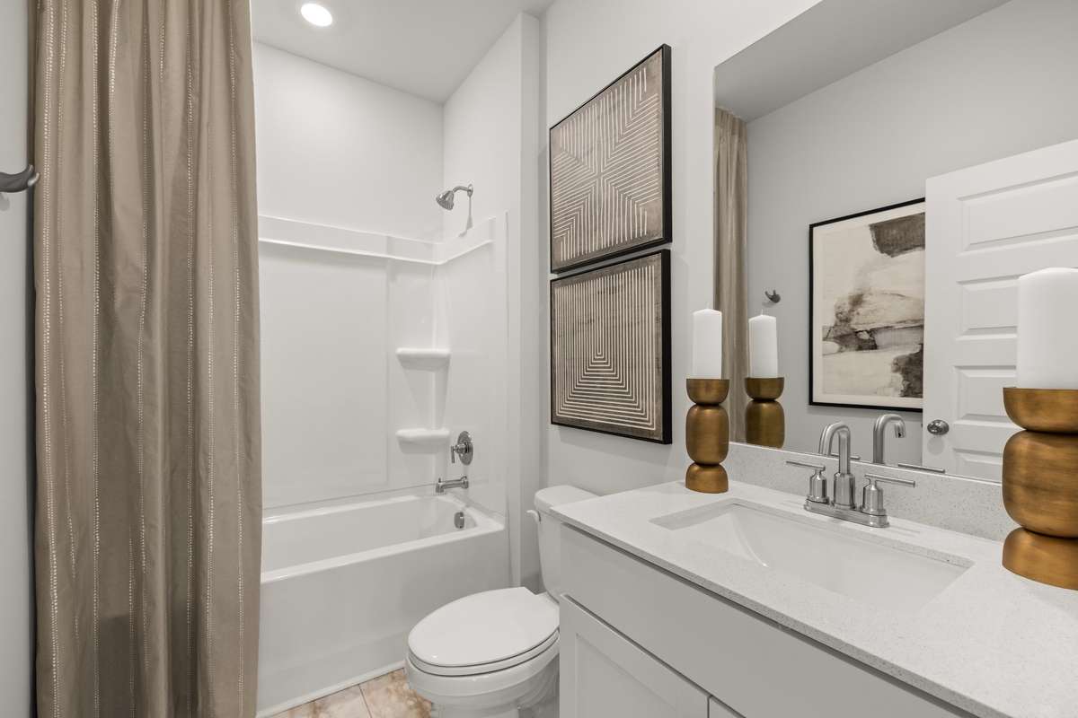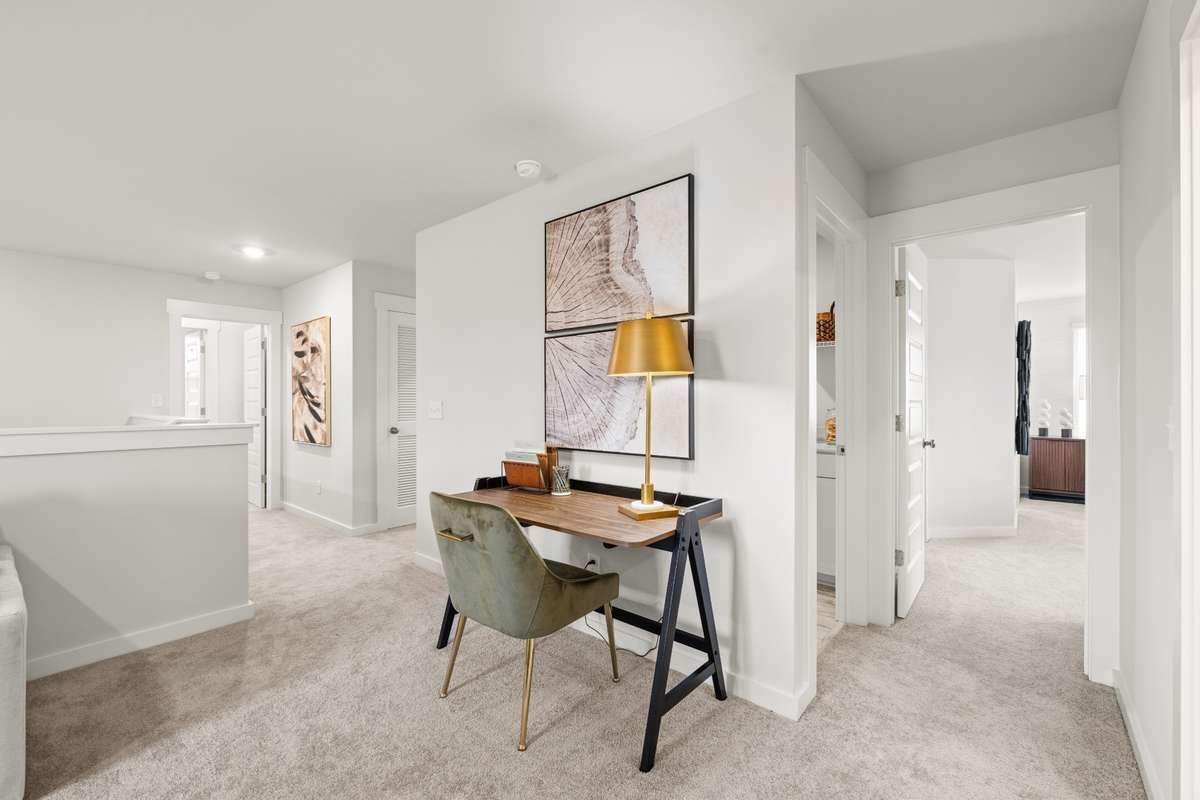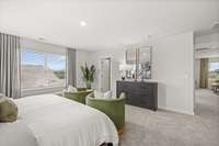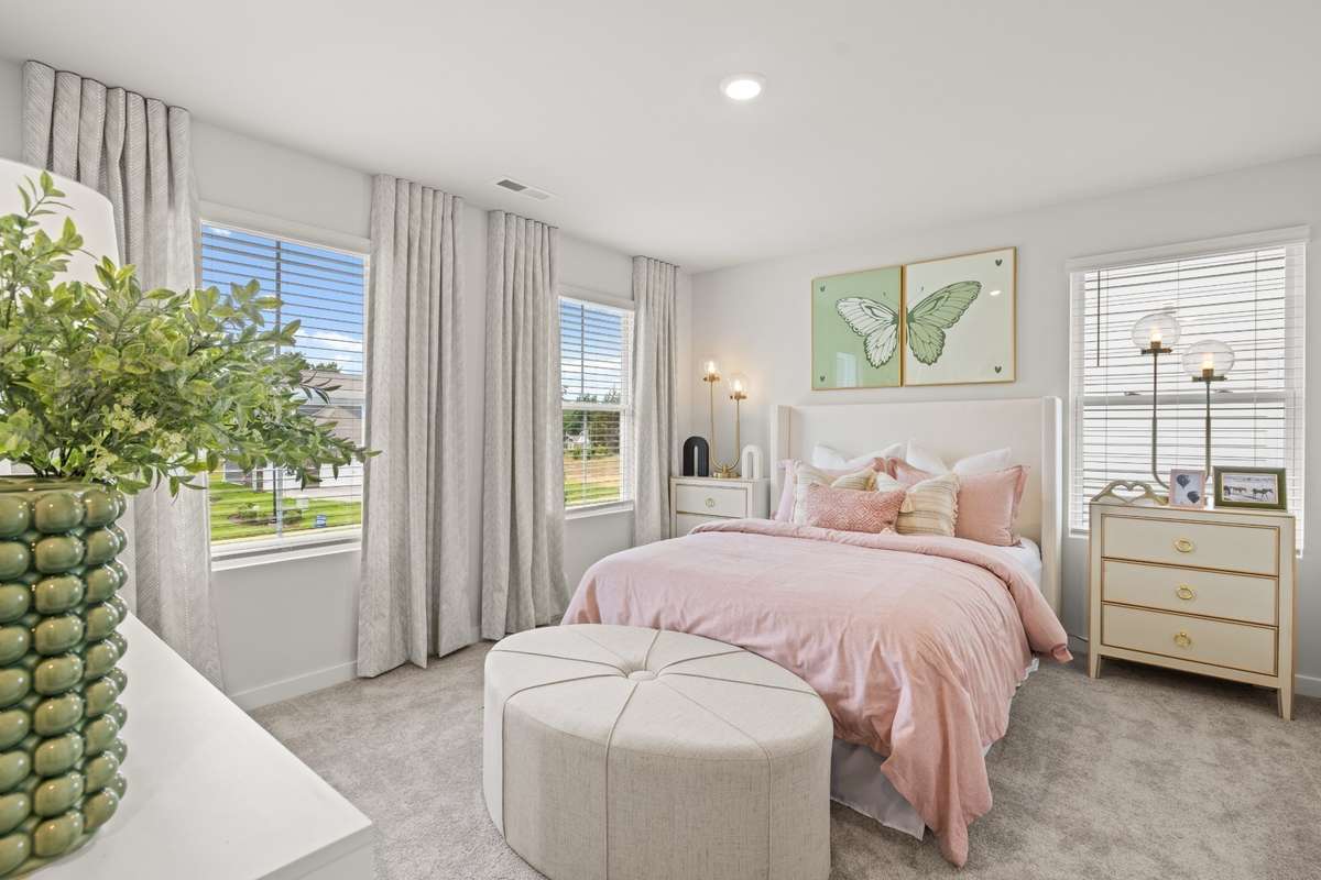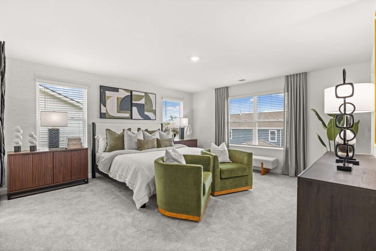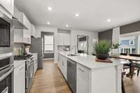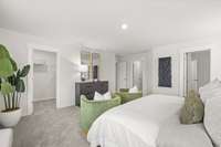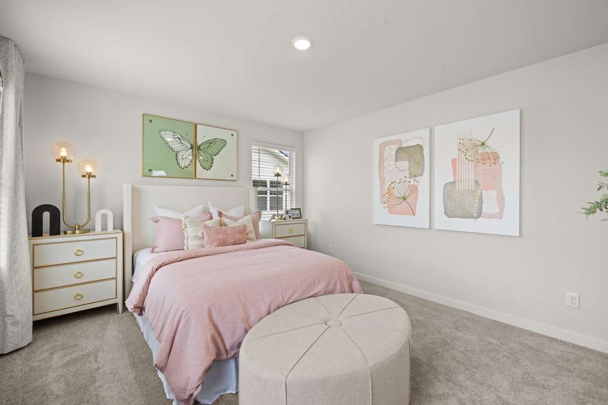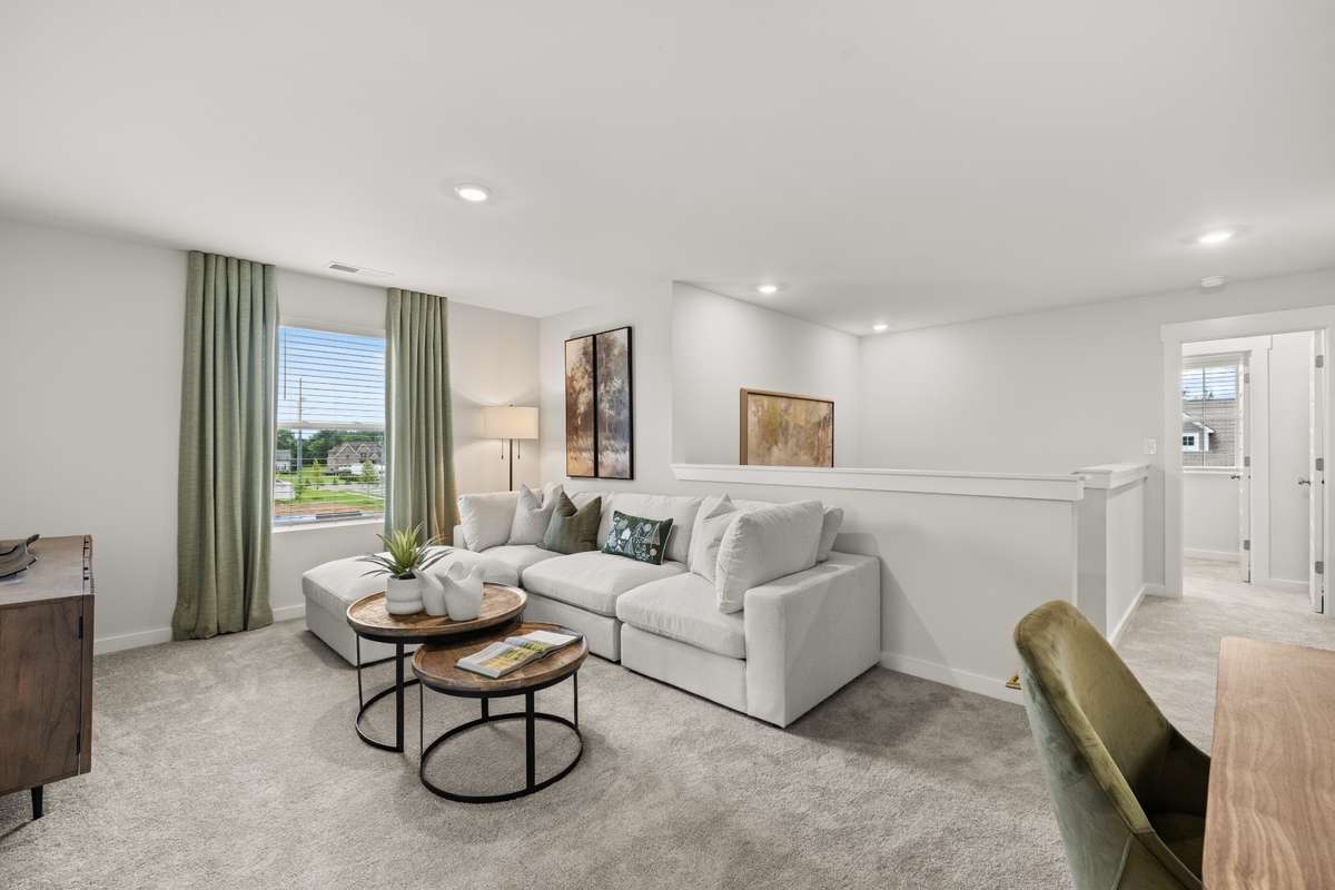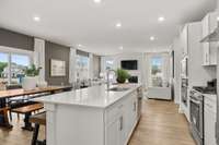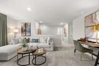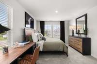 LOT # XX - Laurel floorplan. This spacious and modern two- story home is ready for various lifestyles. A convenient study and bedroom are located off the foyer, leading to a flexible open- concept layout shared between the kitchen, dining area and family room. A versatile loft provides a shared living space upstairs, perfectly placed near four bedrooms, including the luxurious owner’s suite with a spa- inspired bathroom and dual walk- in closets for growing wardrobes. * Images from a furnished model of this home. Actual configuration and features may vary.