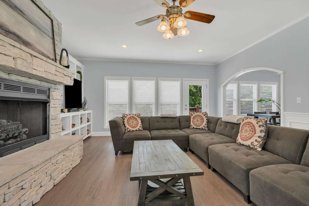 Move- in ready and priced to sell! Enjoy peaceful, private living in one of Burns' most desirable gated communities. Tucked away on a quiet cul- de- sac, this beautiful 3- bedroom, 2. 5- bath home offers breathtaking views and one of the best backyards in the neighborhood- perfect for entertaining or unwinding at home. Flooded with natural light, the home features fresh updates, including new flooring, fresh paint, updated bathrooms, new exterior doors, and stylish new blinds. The kitchen blends funciton and style with a large island, stainless steel appliances, a pantry, and abundant cabinet and counter space. Upstairs, the spacious primary suite is a true retreat with its own fireplace and spa- like bath, along with two additional bedrooms and a full bath. The finished basement provides execptional flexibility-- ideal for a media room, home gym, guest suite, homeschool space, or bonus room. Step outside to your private backyard oasis featuring a large deck and covered patio overlooking a picturesque horse farm. Conveniently located with easy acces to I- 40 and I- 840, this home offers the perfect balance of tranquility and accessibility. More than just a home, this is a retreat you' ll love coming back to every day.