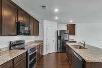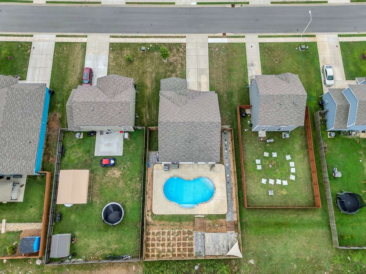 Beautiful 5- bed, 3- bath two- story home in the desirable Westwind community! From the charming covered front porch to the fully fenced backyard with a heated in- ground pool and water feature, this home is designed for comfort and style. Inside, enjoy hard surface floors, soaring ceilings, and an open- concept layout filled with natural light. The spacious living room features custom built- ins and flows into the open dining area and well- appointed kitchen with granite counters, top- tier stainless steel appliances, upgraded cabinetry, a center island, and corner pantry. A main- level bedroom and full bath offer convenience for guests. Upstairs, relax in the game room or retreat to the oversized primary suite with dual vanities, soaking tub, walk- in shower, and large walk- in closet. Three additional bedrooms, a full bath, and a large laundry room complete the upper level. Convenient 2- car garage. Close to schools, shopping, and dining!