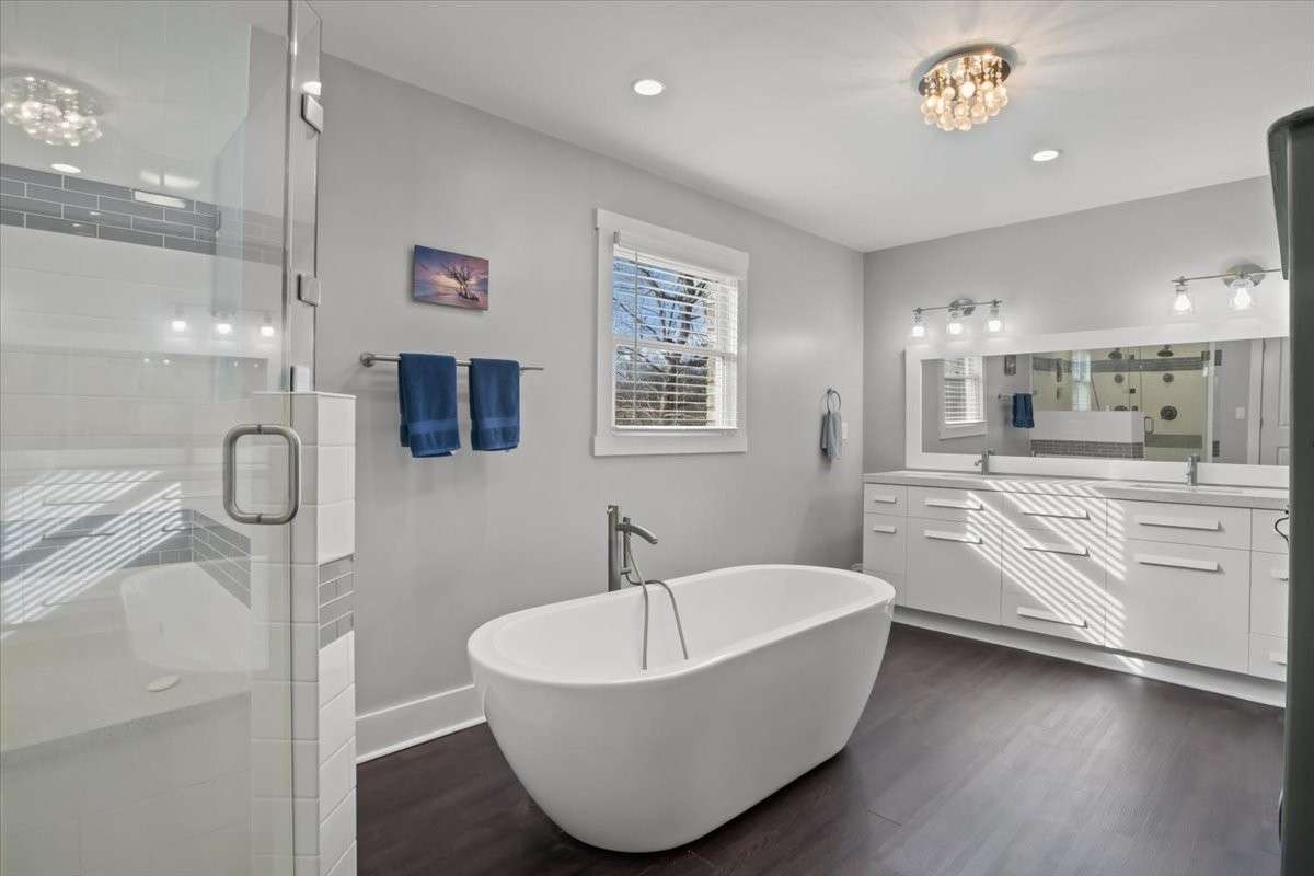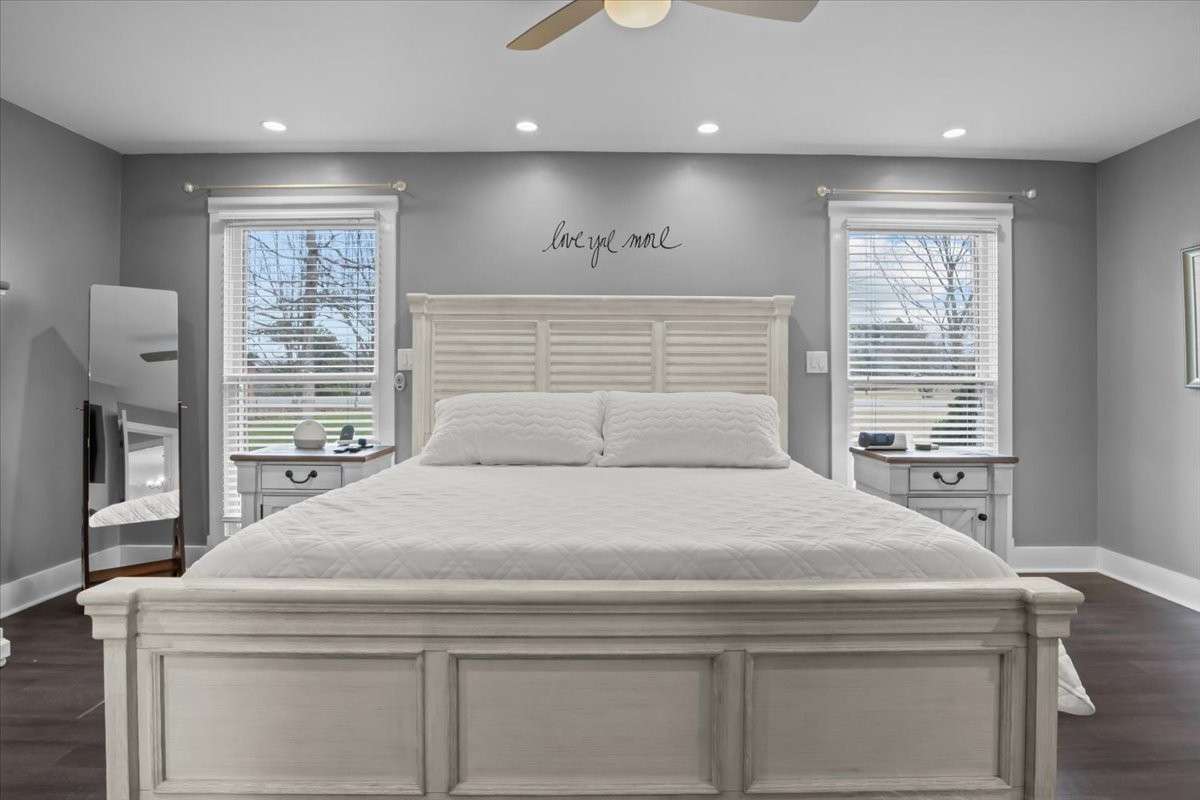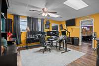 This property features 4–5 bedrooms or versatile office/ bonus spaces, a main- level primary suite, and 3 full baths, providing comfortable living for families, remote work, or multi- generational arrangements. The home is currently configured with two dedicated offices, an in- home gym, and a spacious recreation room, offering excellent adaptability. The primary suite includes a custom tile shower, generous walk- in closet, and convenient main- floor access.