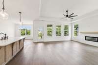 The walk- out basement not only expands your living space, but also provides added peace of mind during inclement weather, offering a lower- level area that families often prefer for safety during severe storms. This level includes a private bedroom, dedicated office, and a large flex space—ideal for a media room, guest suite, or in- law setup—complete with a convenient kitchenette.