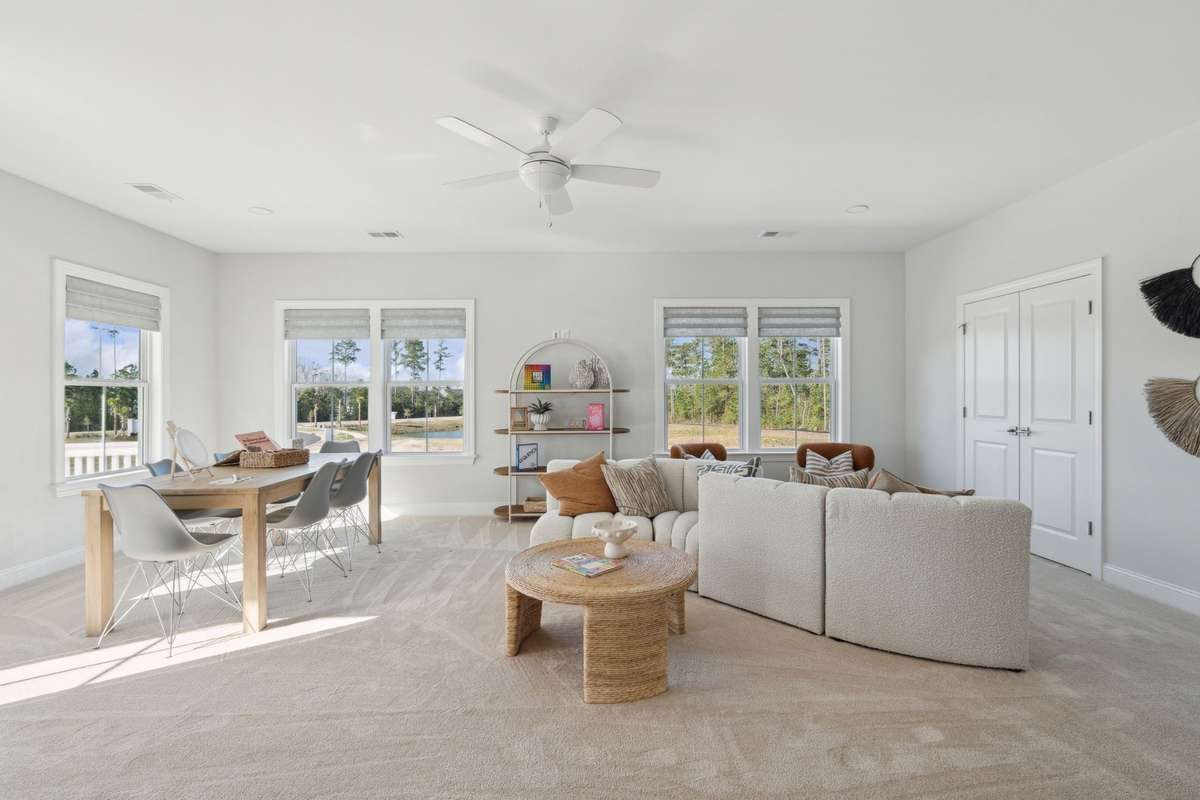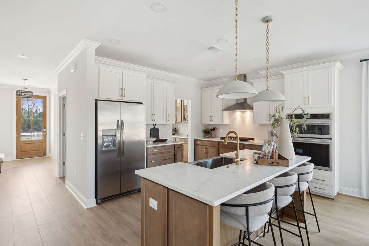 The open- concept layout features a bright and inviting family room, a modern kitchen with plenty of cabinet space, and elegant finishes throughout. Upstairs, you’ll find additional bedrooms, bathrooms, and a versatile loft area perfect for a media space, office, or playroom. Photos represent similar model home.