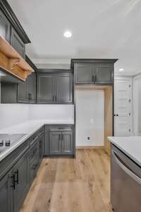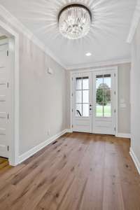 This beautiful home offers the perfect blend of style, space, and functionality. The spacious eat- in kitchen is designed for both everyday living and entertaining, featuring a large island, double ovens, cooktop, stainless steel appliances, solid surface countertops, and a generous pantry. Detailed trimwork throughout the home adds timeless character and charm.